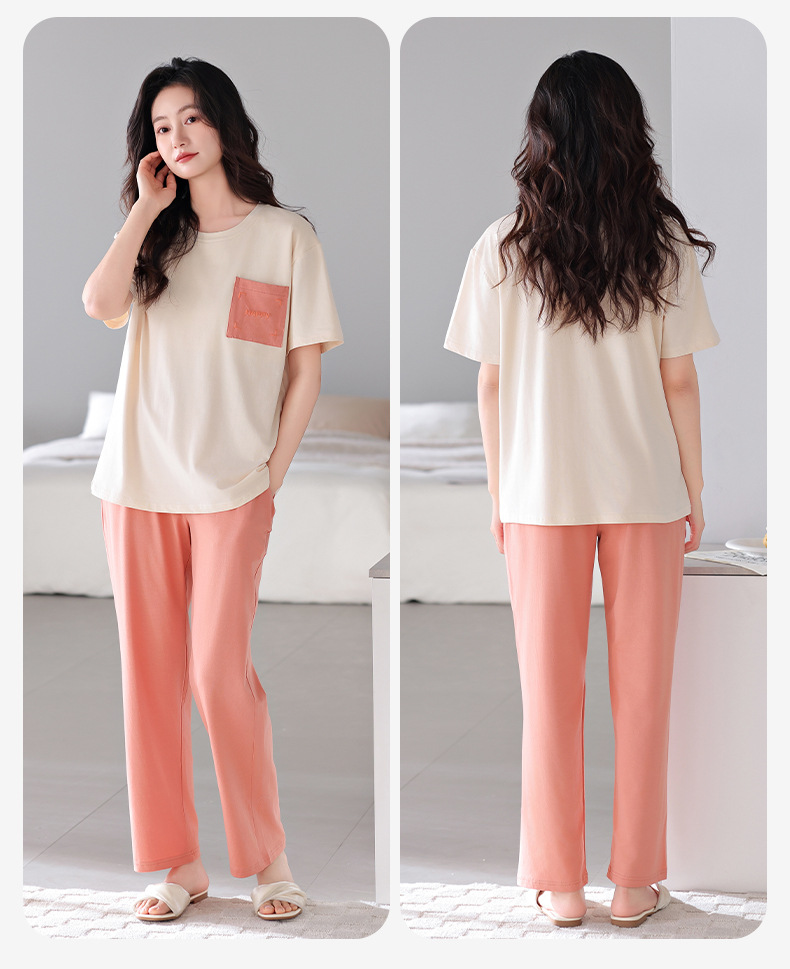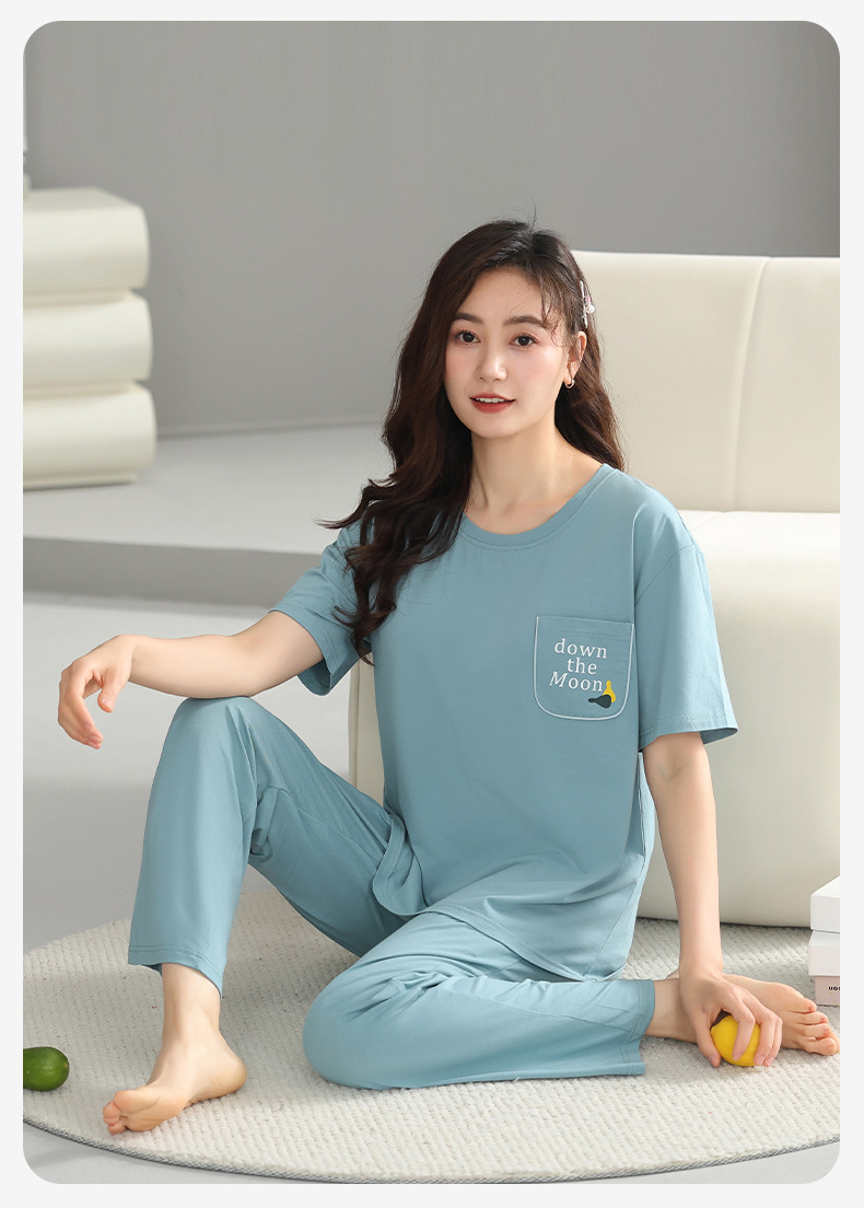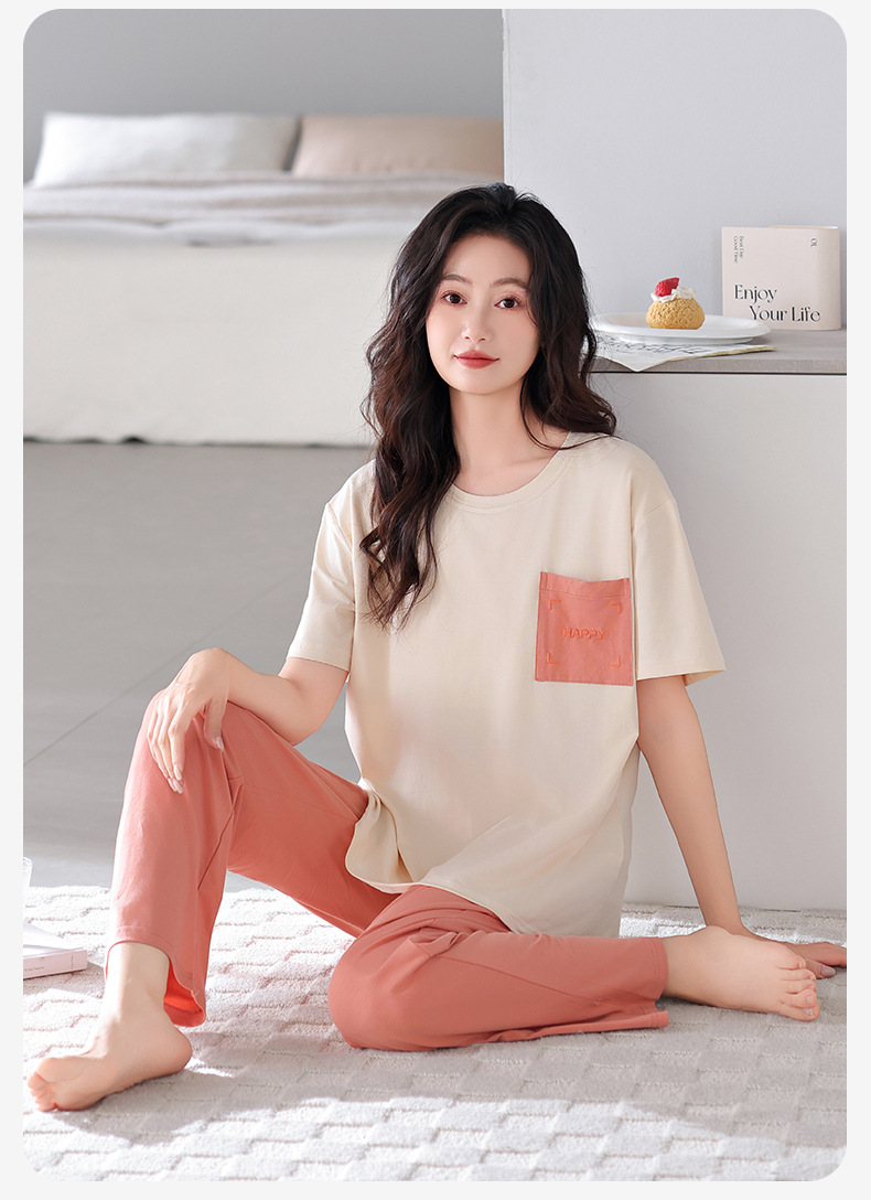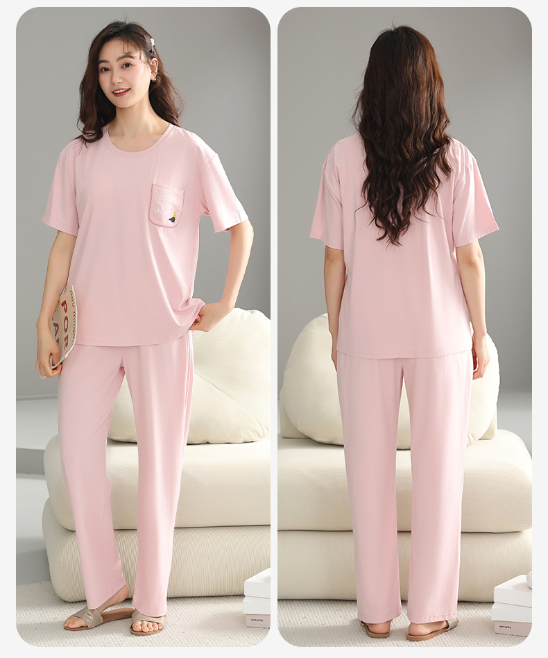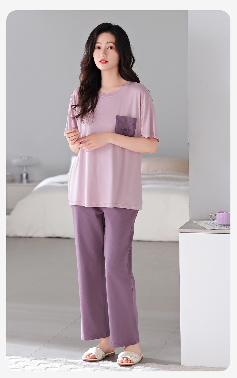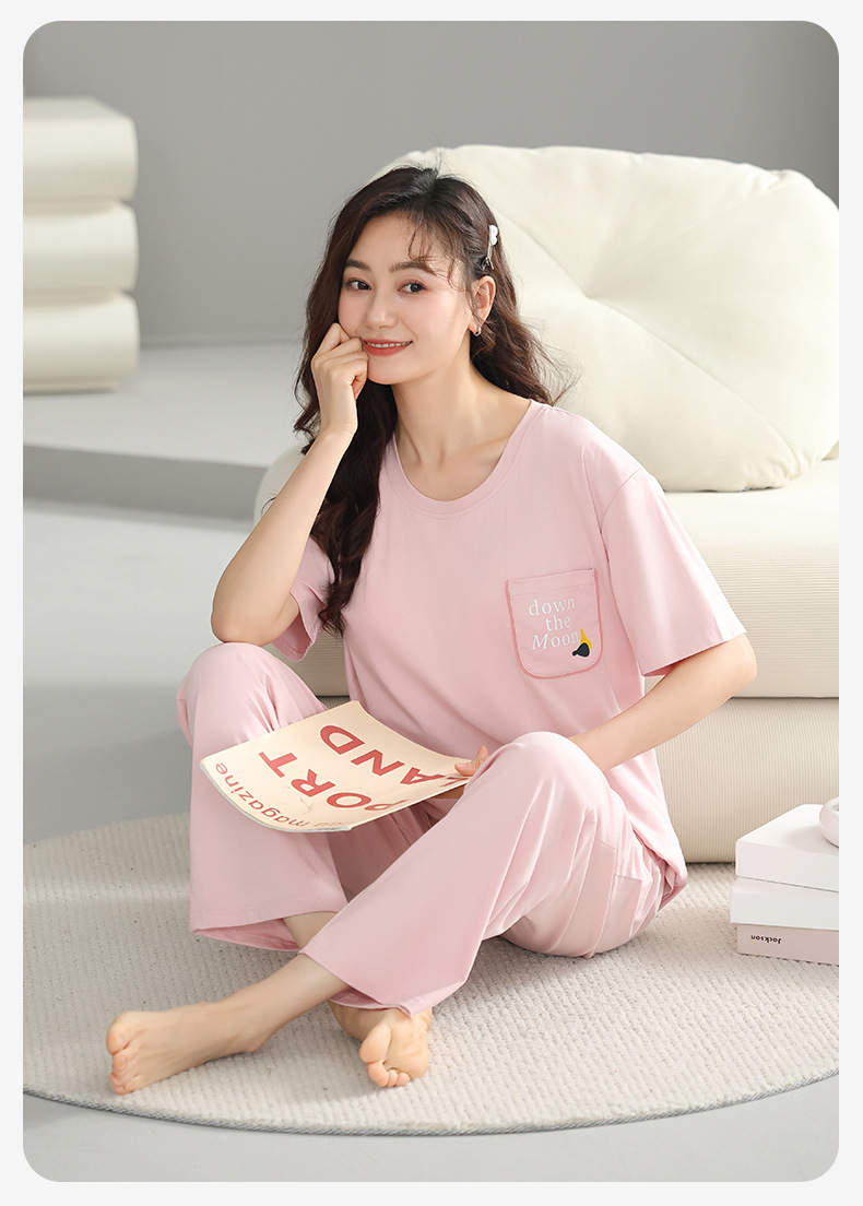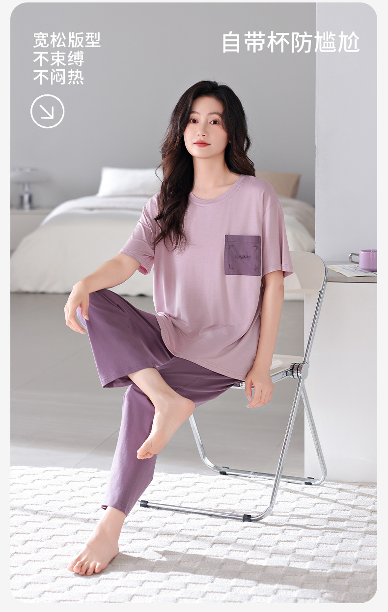 잠옷 여성의 여름 모달 짧은 소매 바지 가슴 패드 2025 새로운 여름 부드러운 집 옷 여름스토어 가기