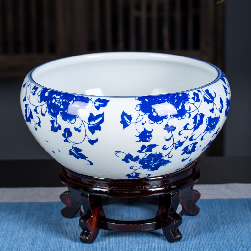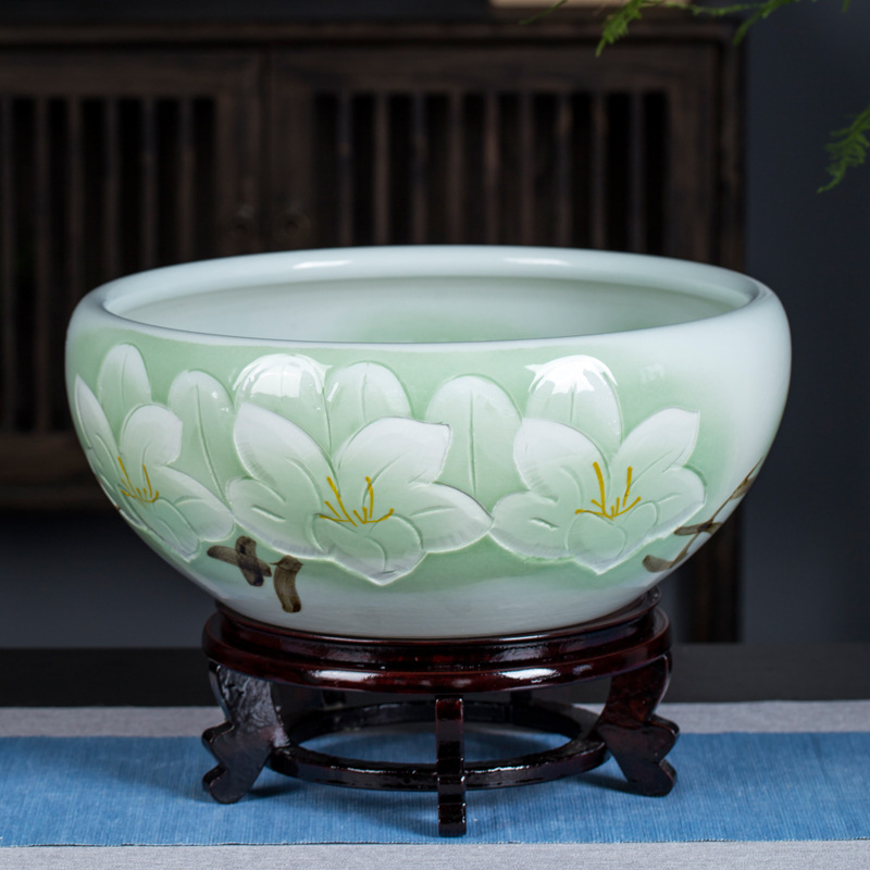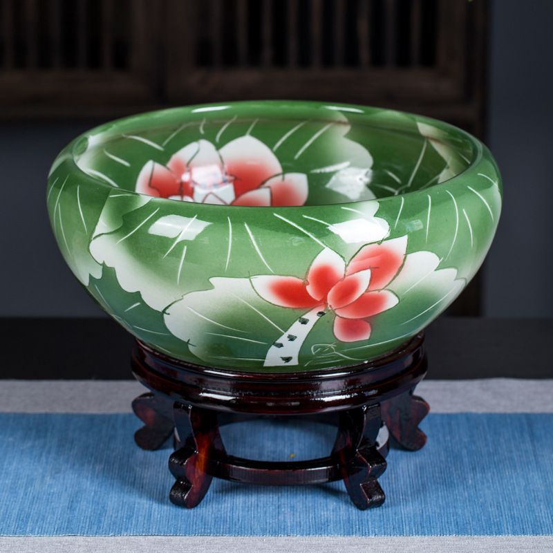 경덕진 도자기 어항 제조업체 거실 탁상 수련 화분 고전 방식 어항 소형 일체형 장식품