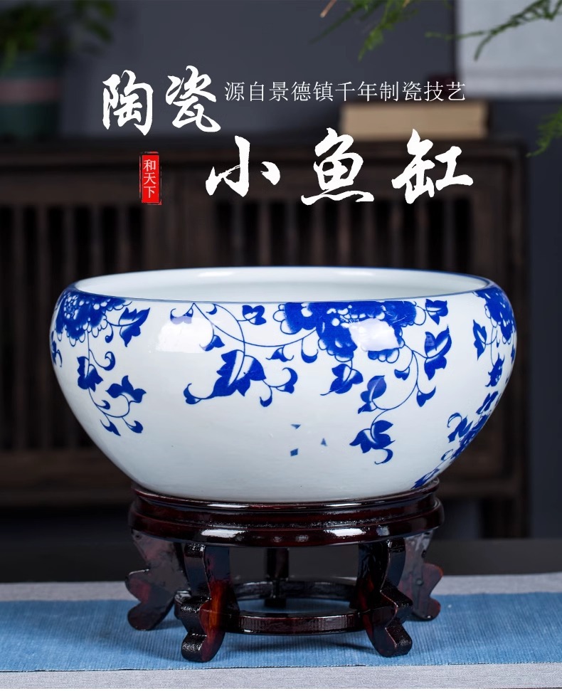 경덕진 도자기 어항 제조업체 거실 탁상 수련 화분 고전 방식 어항 소형 일체형 장식품스토어 가기