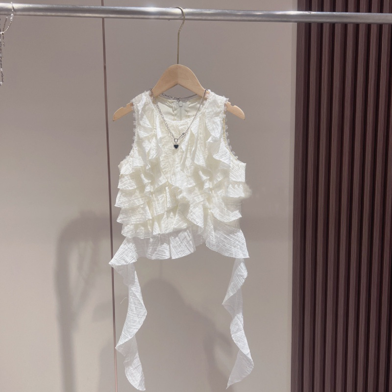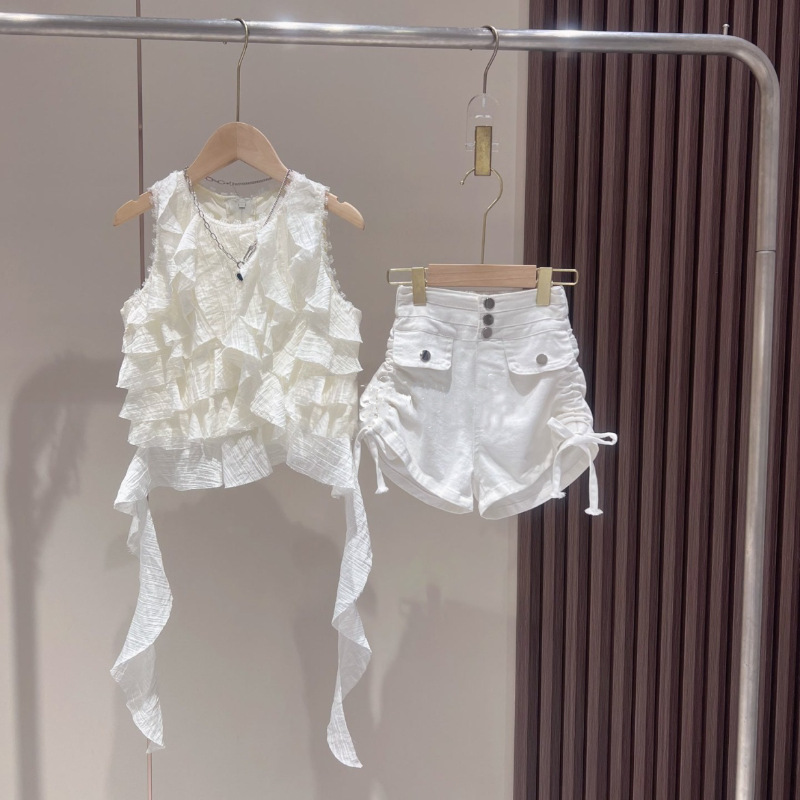 • 흰색 프린지 조끼 + 흰색 단추 반바지