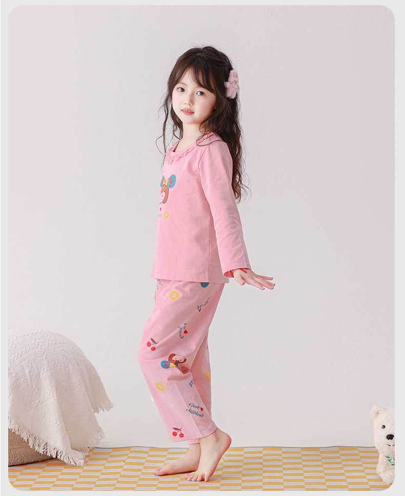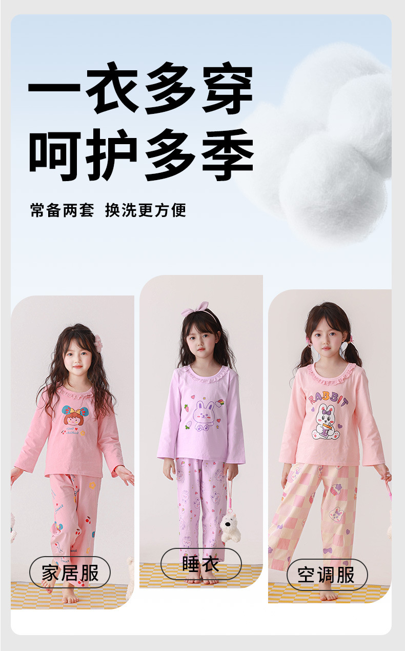 순수 면화 봄과 여름 세트 어린이 집 옷 중식 및 대식 어린이를위한 얇은 새 소녀 긴팔 에어컨 옷 9 소매 잠옷스토어 가기