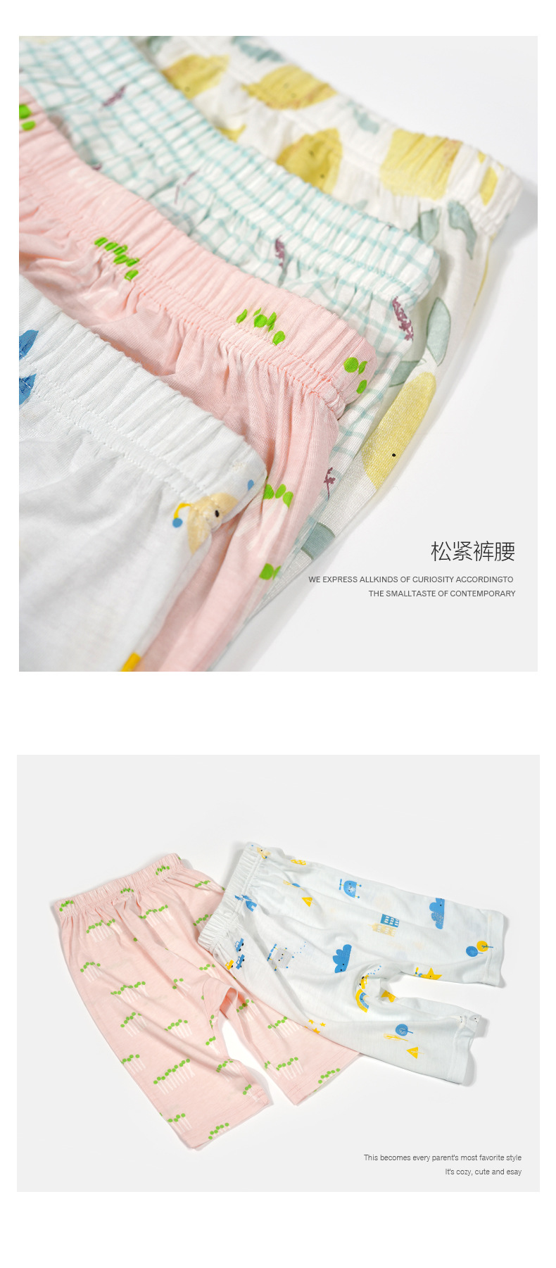 미니존 아기 바지 7부 바지 초박형 빅힙 바지 유아 캐주얼 바지 여름 얇은 귀여운 스타일