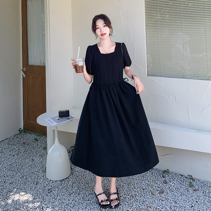 진짜 샷 라이트 요리 프랑스 스퀘어 칼라 원피스 2025 새로운 헵번 스타일 하이 허리 스티칭 주름 슬림 블랙 스커트스토어 가기