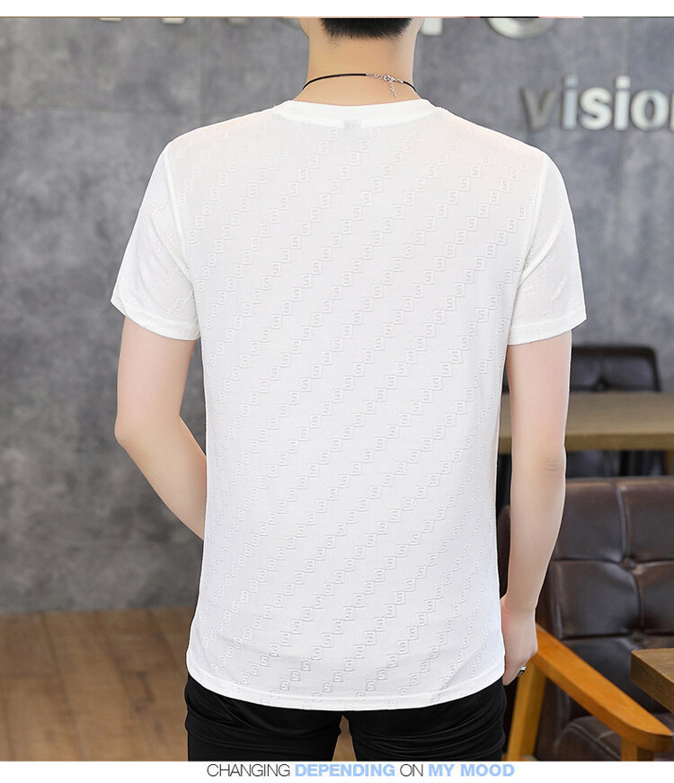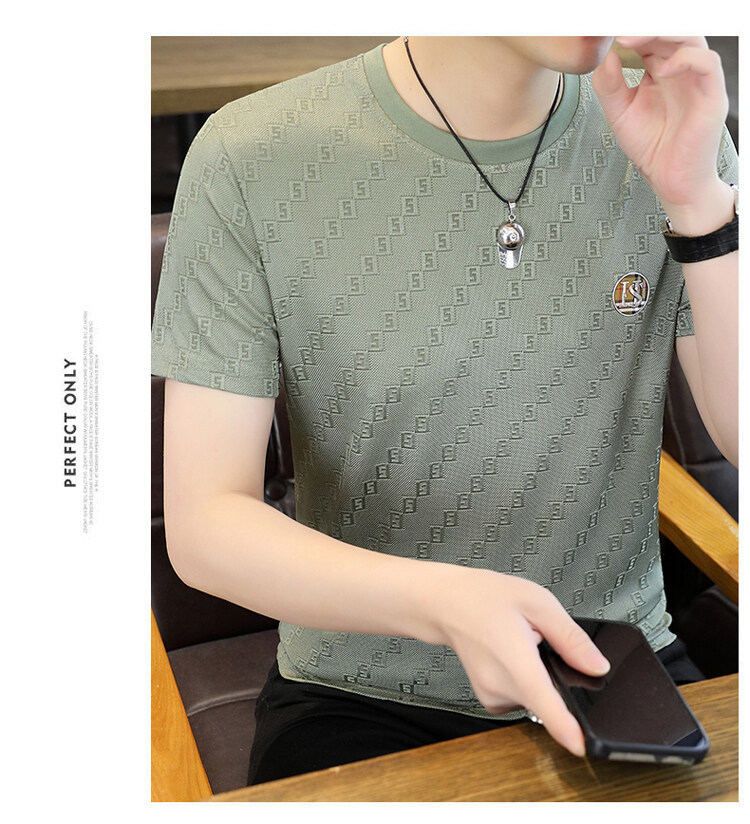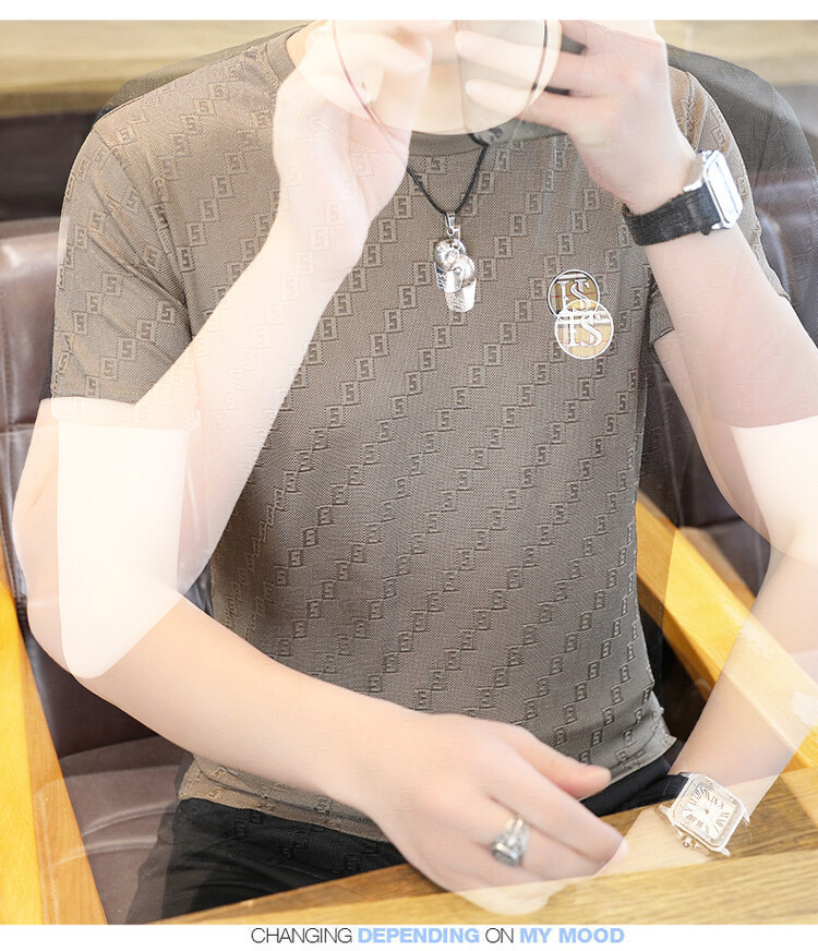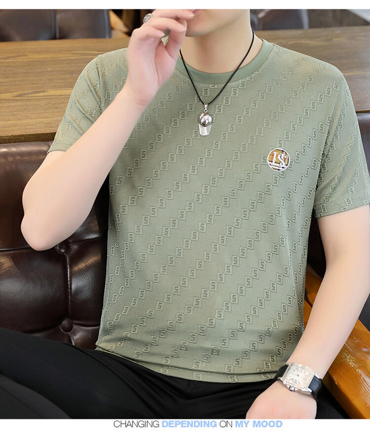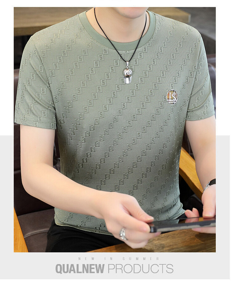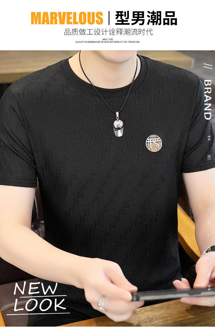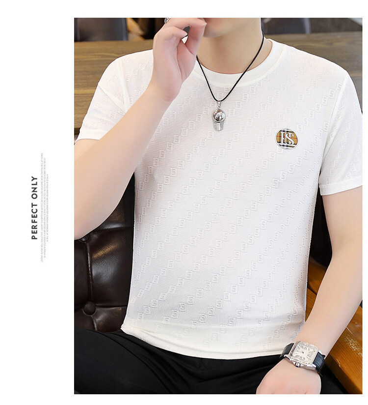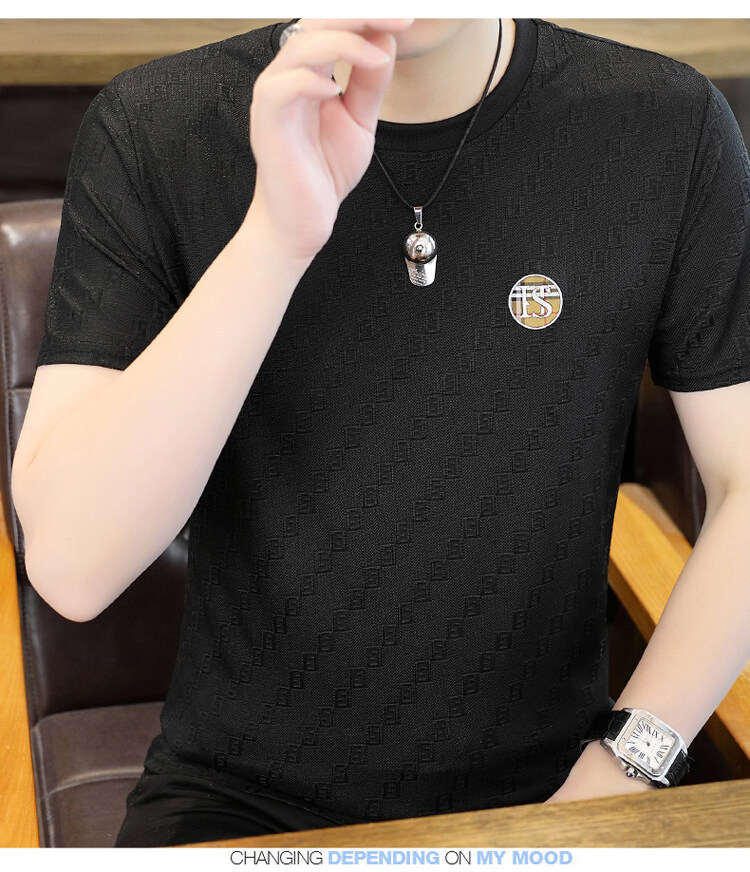 남성용 아이스 실크 반팔 티셔츠 트렌디 하이 엔드 핫 드릴링 자카드 퀵 드라이 티셔츠 반소매 통기성 탑 티셔츠 얇은 티셔츠스토어 가기