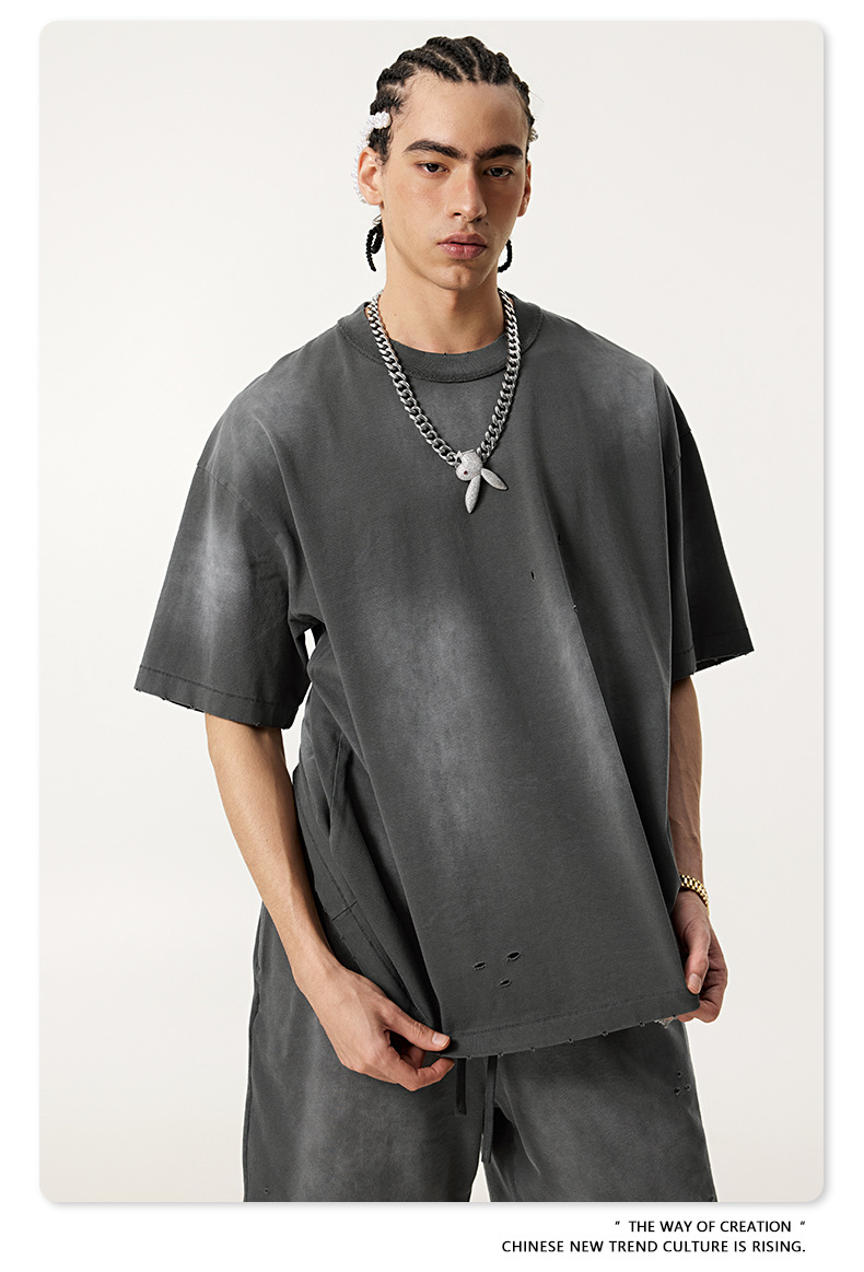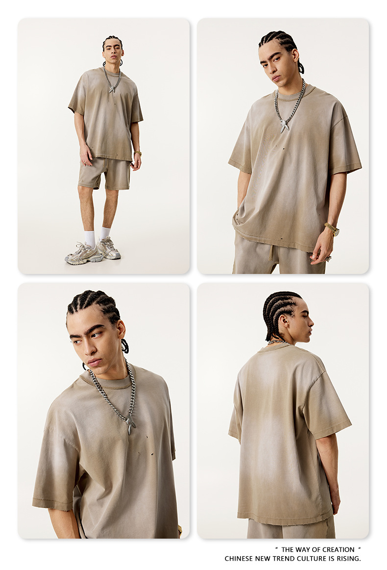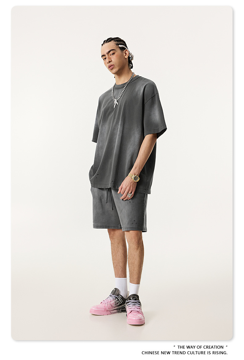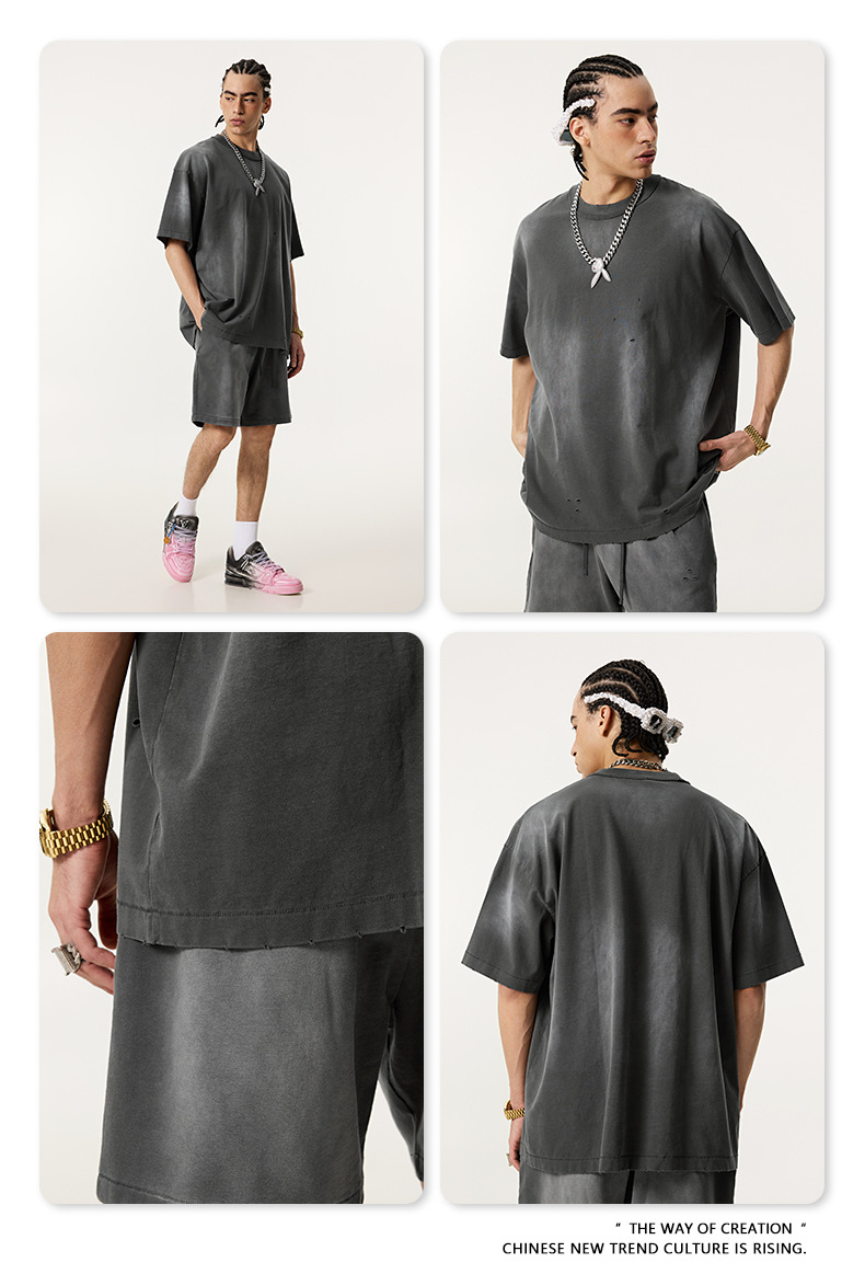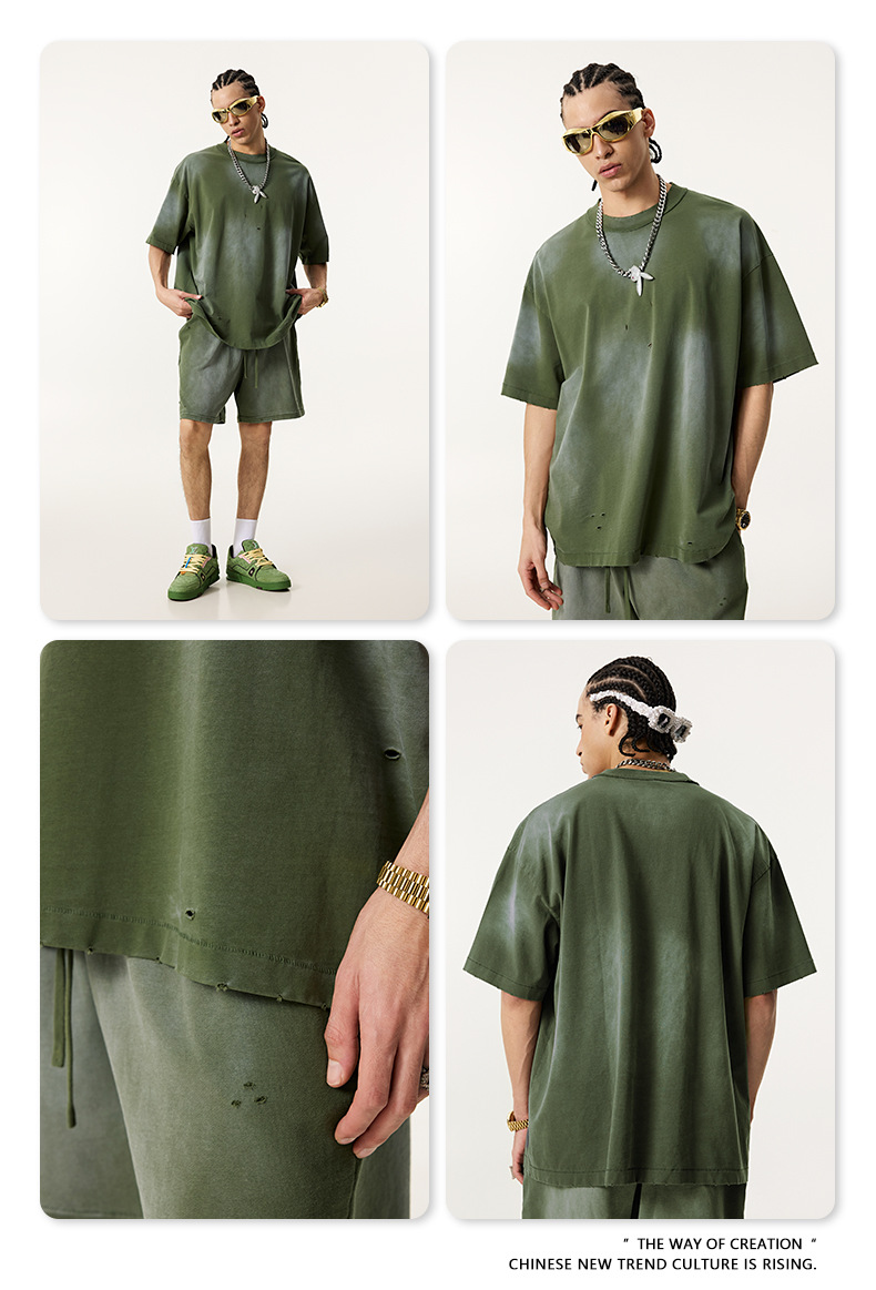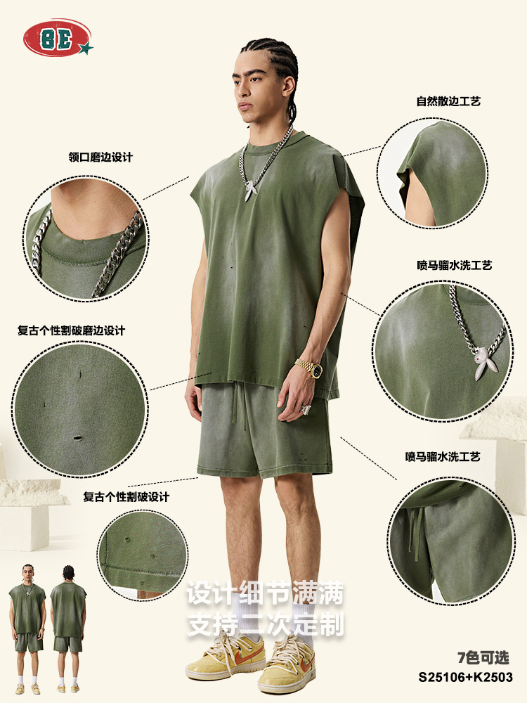 BE 남성복 | 2025 여름 미국 패션 브랜드 중공업 역방향 자동차 양복 조끼 컬링 티셔츠 찢어진 조끼 남성용 스포츠 정장
