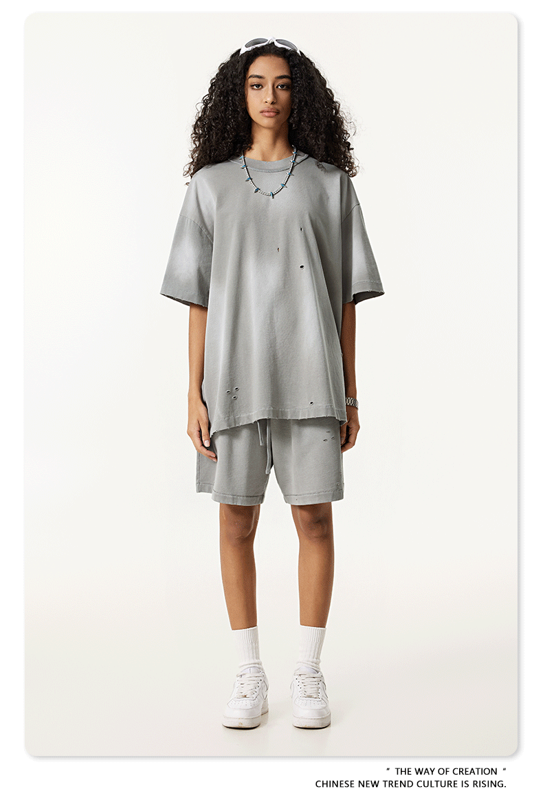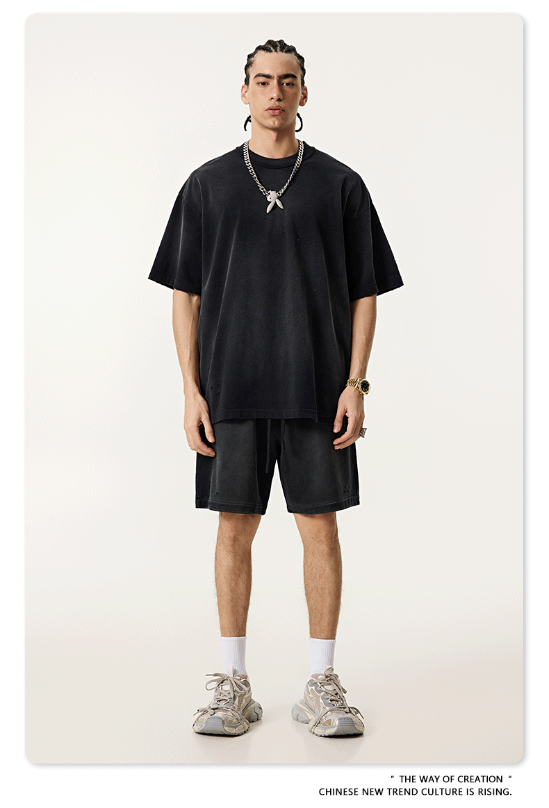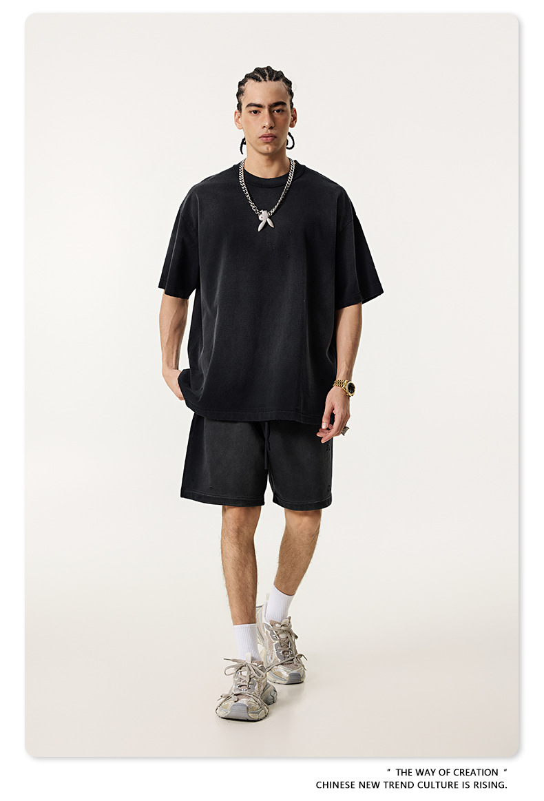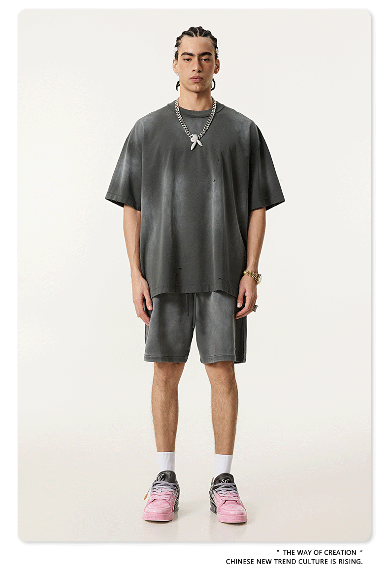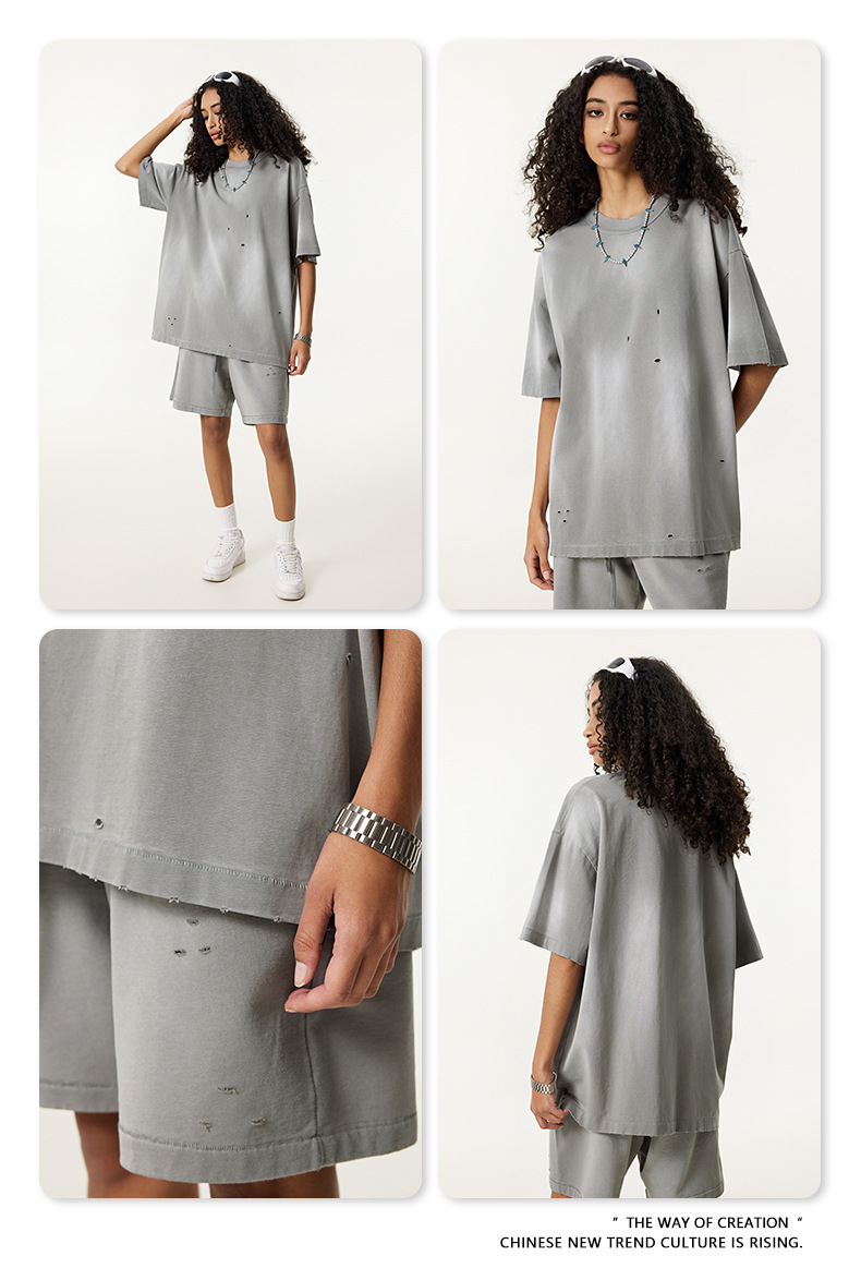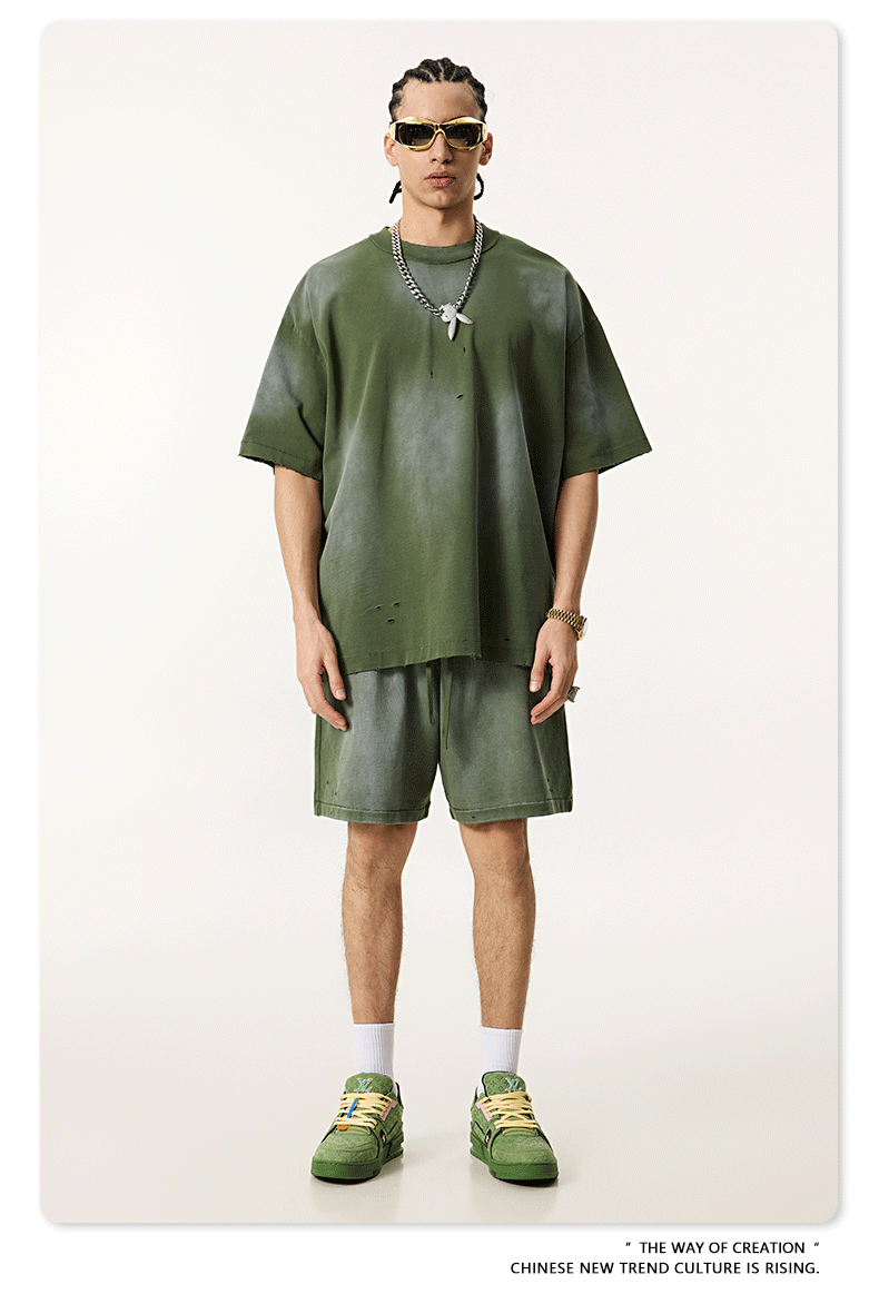 BE 남성복 | 2025 여름 미국 패션 브랜드 중공업 역방향 자동차 양복 조끼 컬링 티셔츠 찢어진 조끼 남성용 스포츠 정장