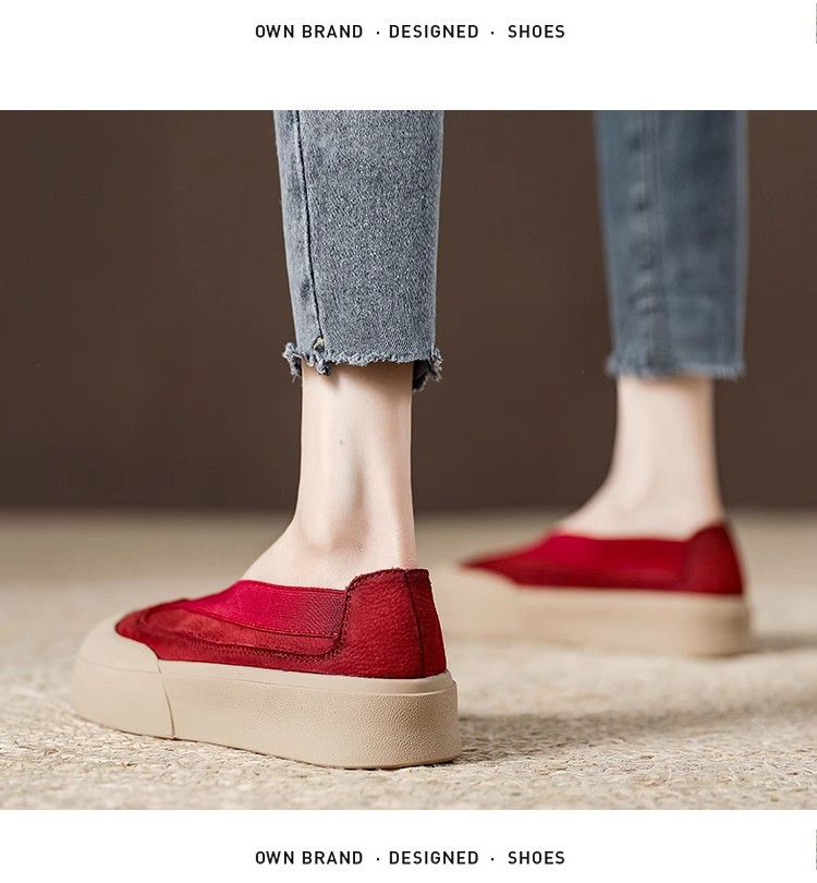정품 가죽 소프트 솔 피곤하지 않은 여성 신발 슬립-레드 싱글 신발 봄과 여름 2025 새로운 얕은 입 캐주얼 로퍼