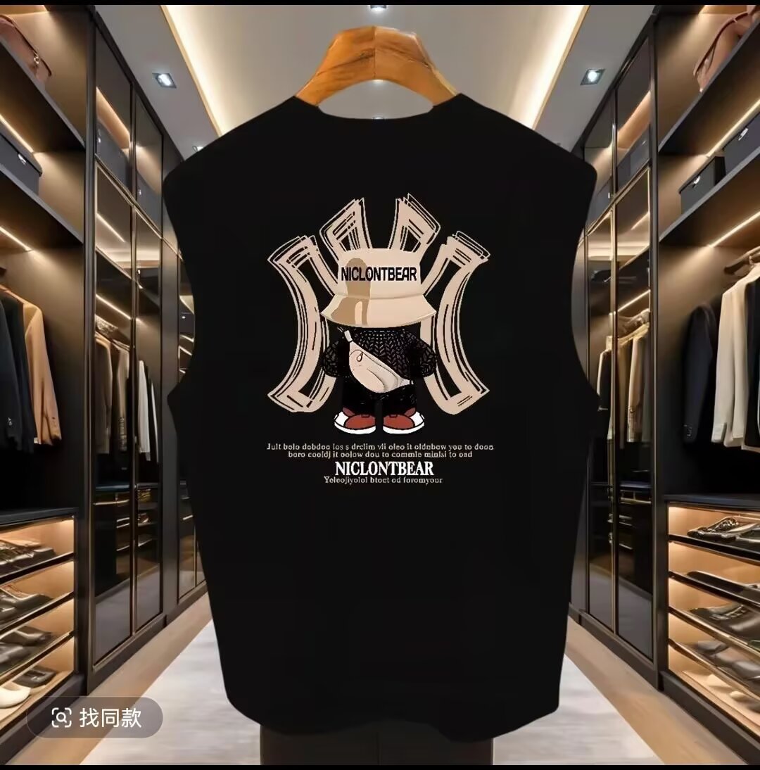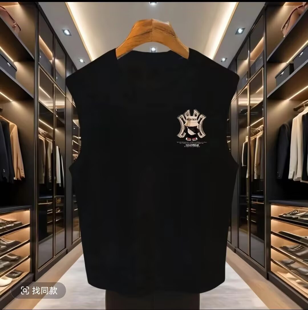 미국 스타일 트렌디 브랜드 티셔츠 남성 2025 년 여름 새로운 느슨한 무거운 캐주얼 민소매 티셔츠 인기