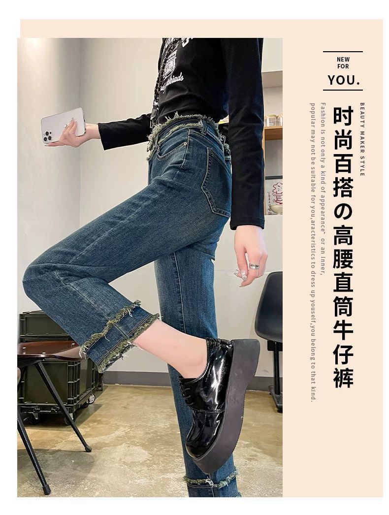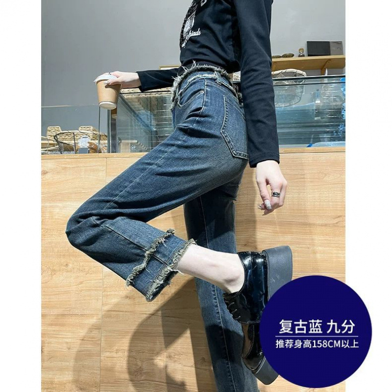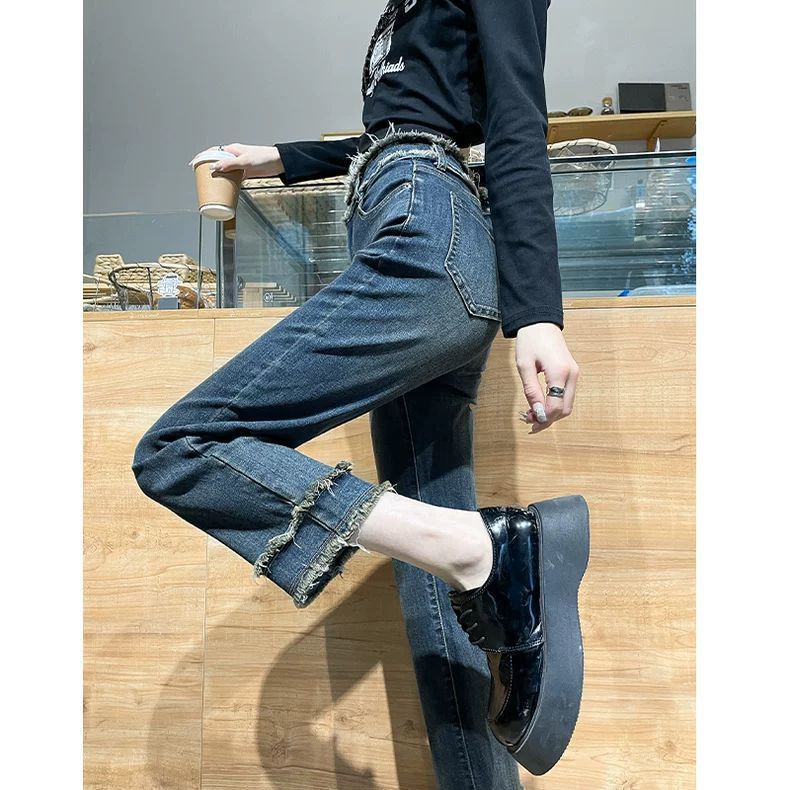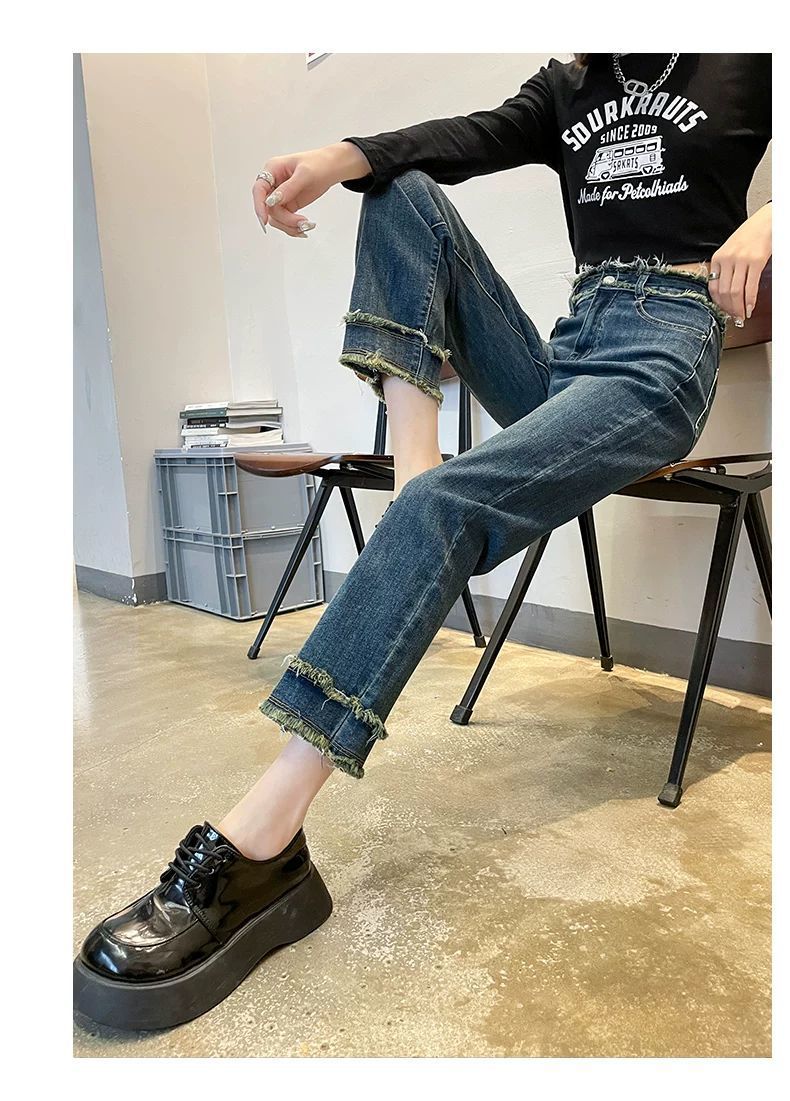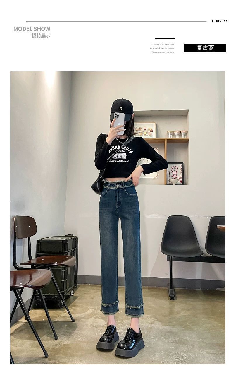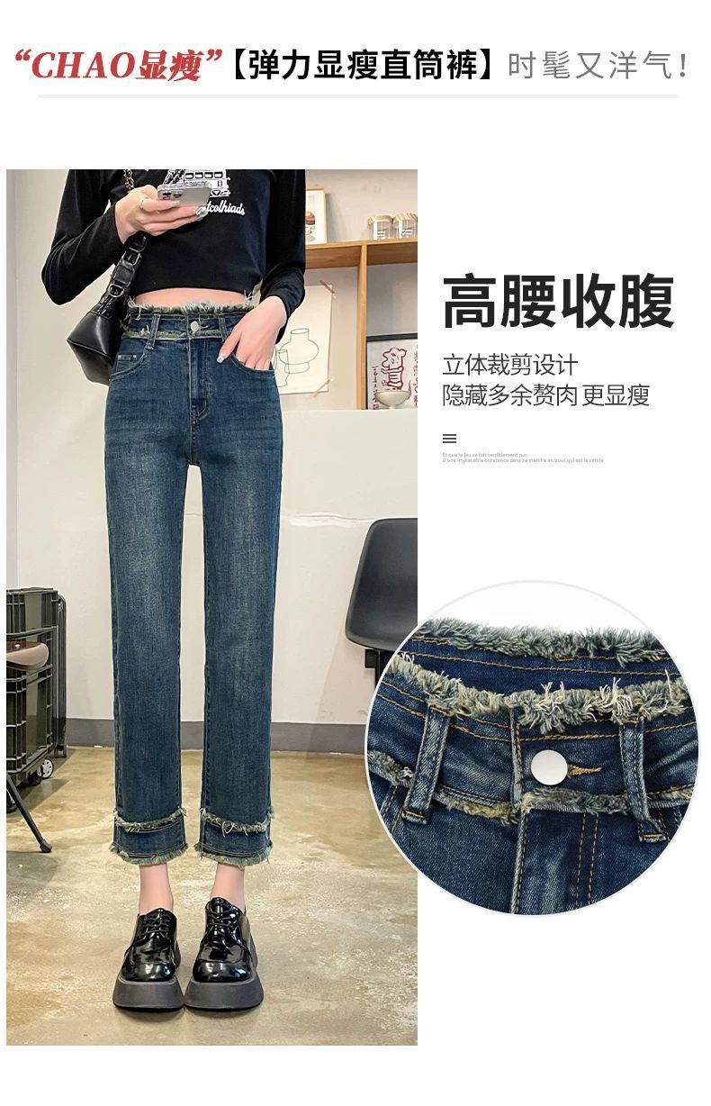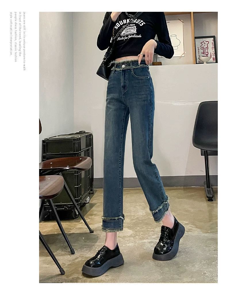 스트레이트 레그 청바지 여성의 봄과 여름 2025 새로운 높은 허리 슬리밍 8 점 작은 9 점 연기 튜브 바지 어린이 트렌디스토어 가기