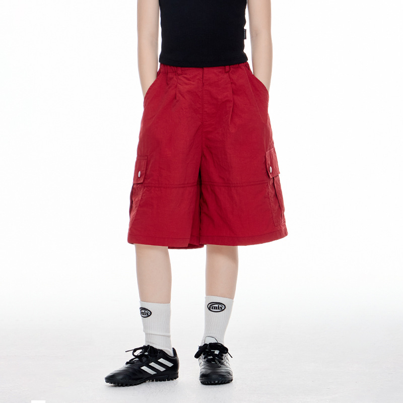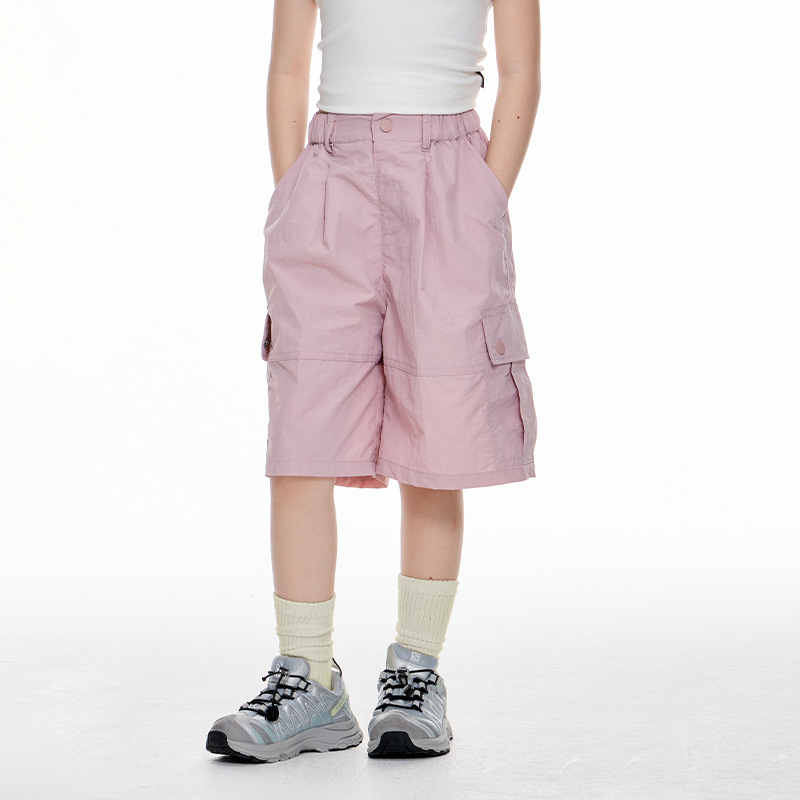 여자 5 점 오버홀 2025 여름 새 어린이 포켓 느슨한 캐주얼 바지 대형 어린이 스포츠 올 매치 반바지