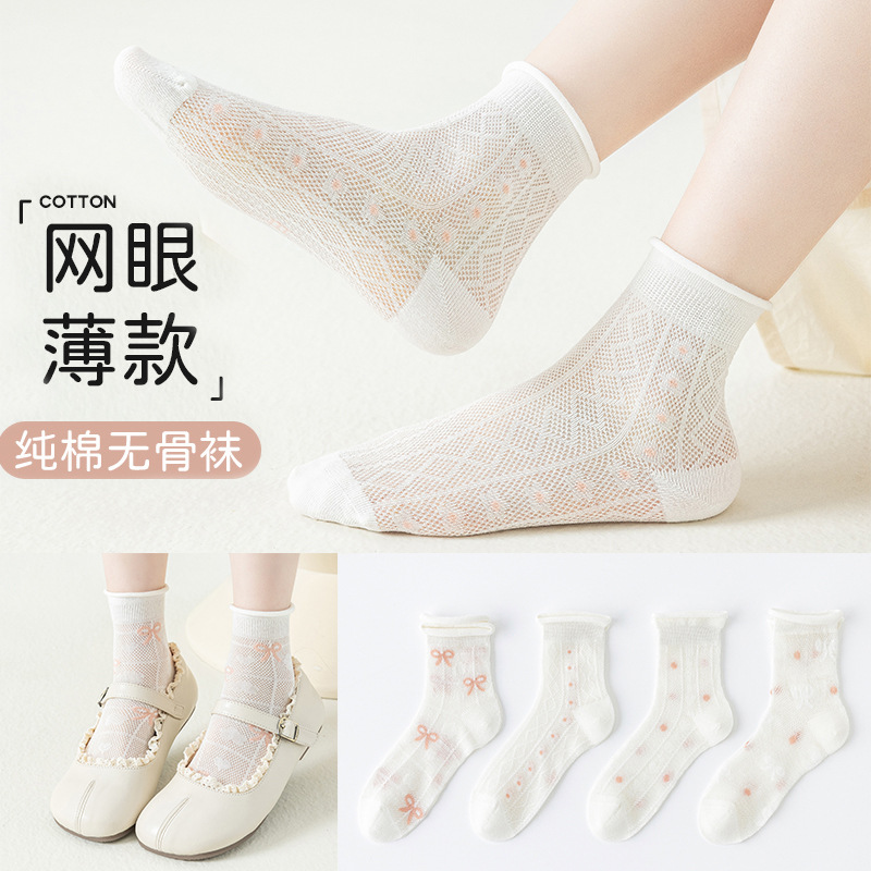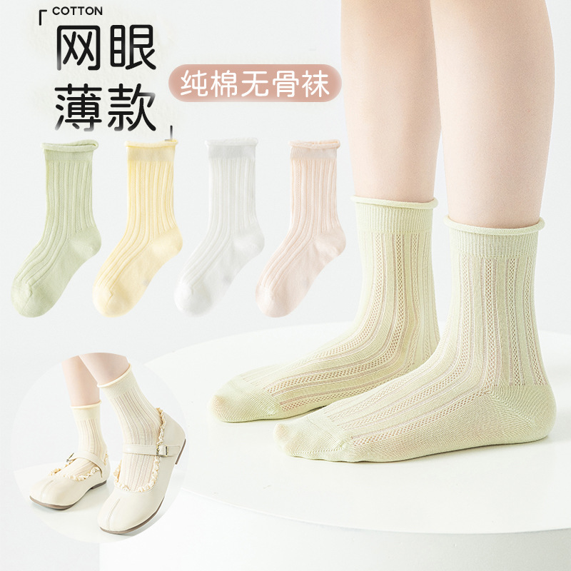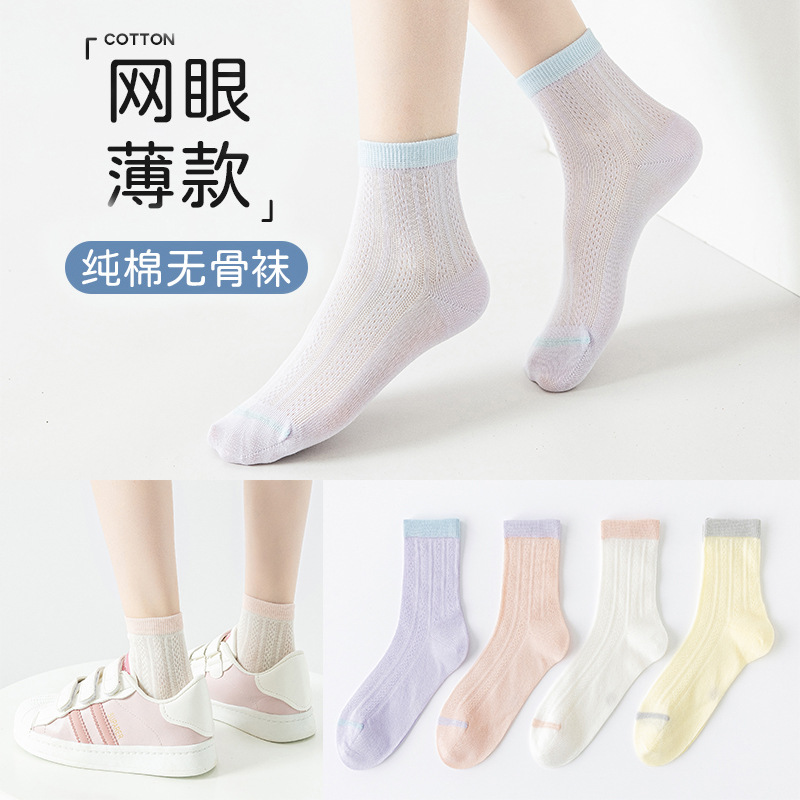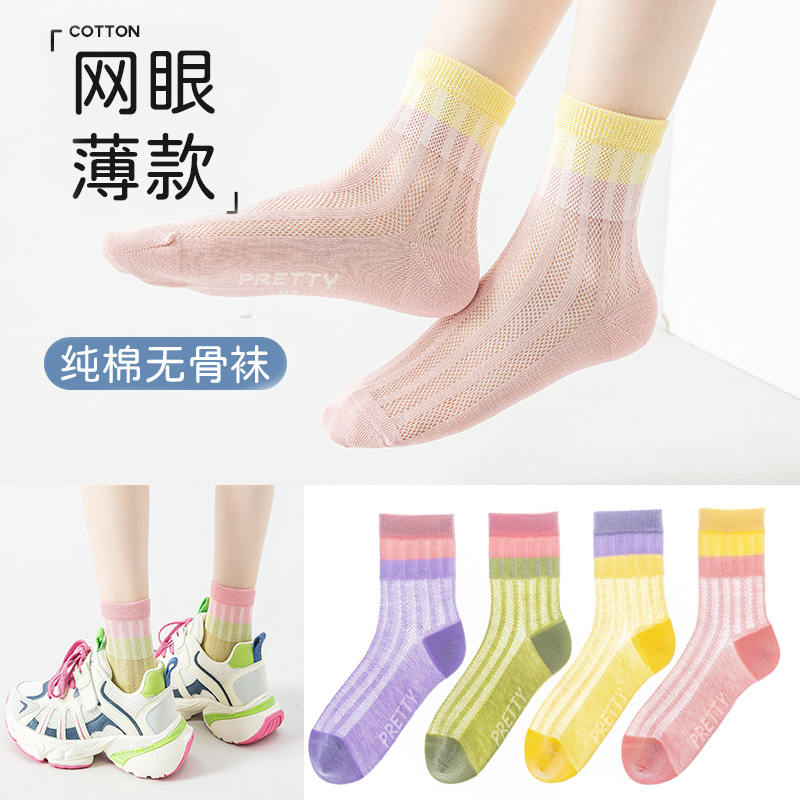 소녀 양말 봄과 여름 통기성 메쉬 양말 사탕 색상 귀여운 올 매치 활 느슨한 면 아기스토어 가기