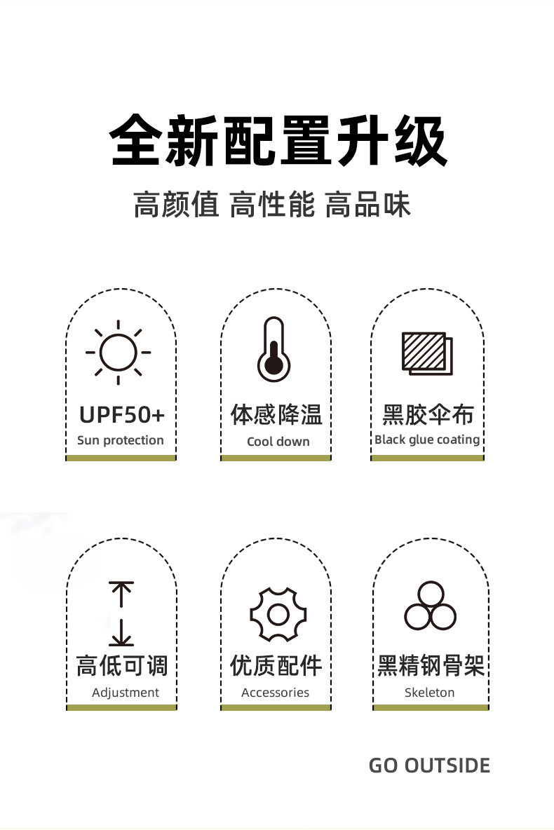 A8C 태양 방비 블랙 고무 차양 야외 캠핑 우산 스톨 자외선 차단 여름 해변 낚시