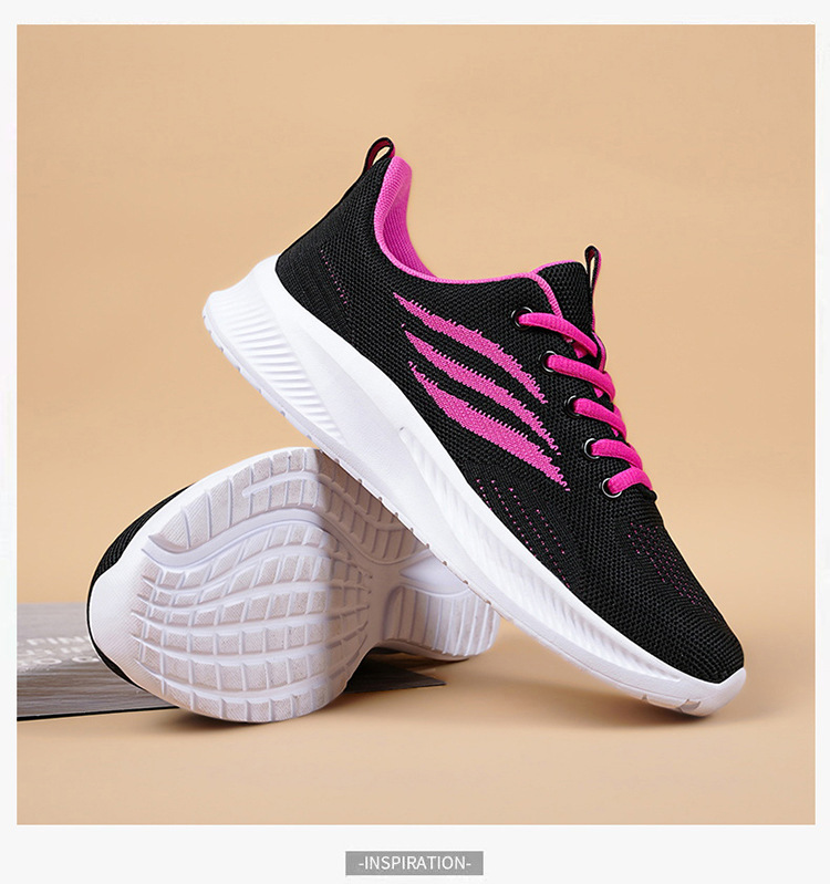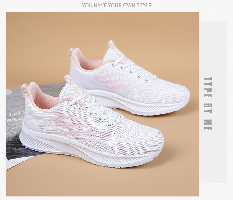2023 여름 새로운 통기성 플라이 짠 스포츠 신발 여성을위한 다목적 편안한 메쉬 플랫 바닥 경량 중공 운동화