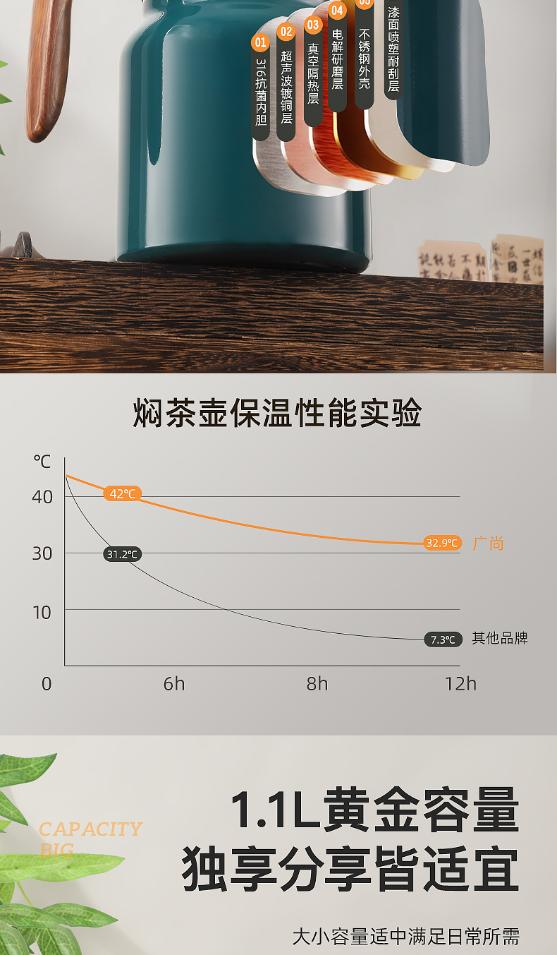 316 스테인레스 스틸 끓는 물 보온 주전자 대용량 스튜 주전자 차 물 분리 주전자 가정용 따뜻한 주전자 도매