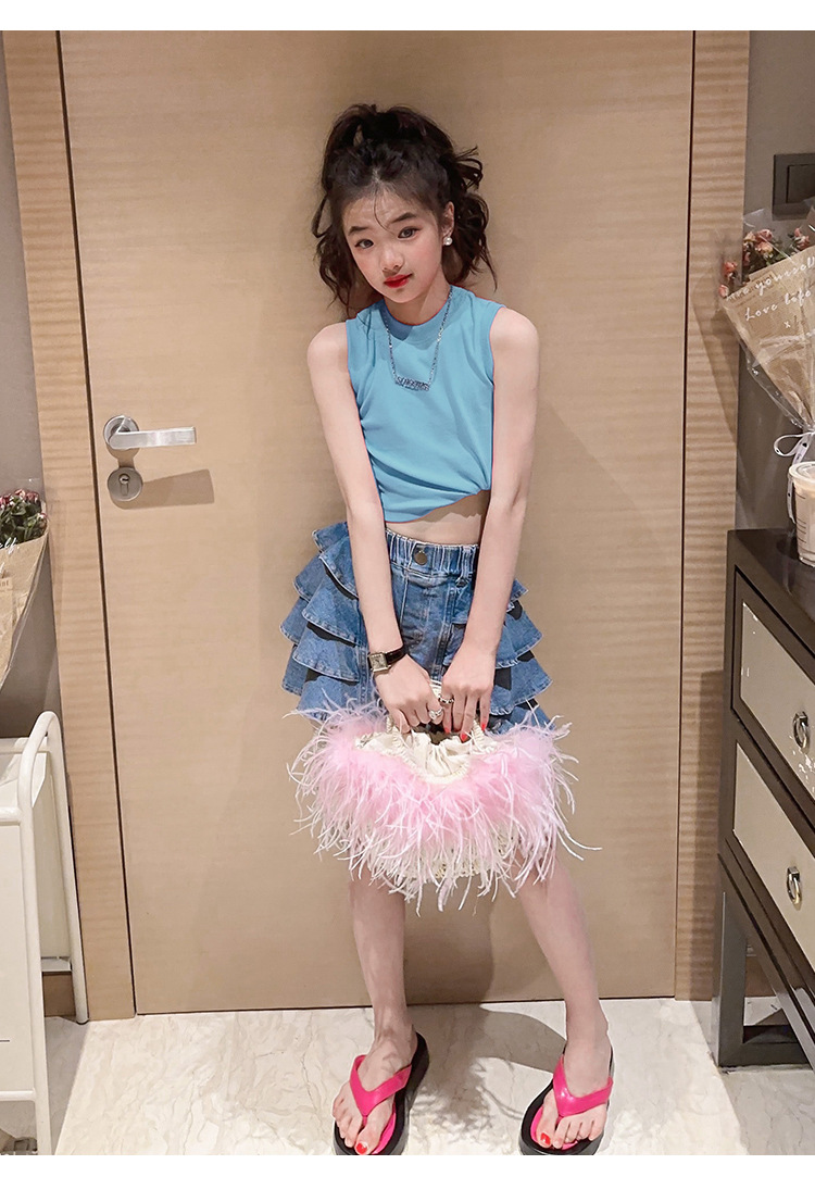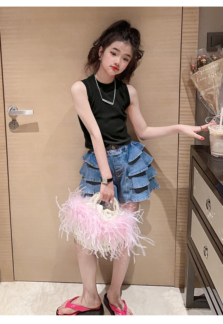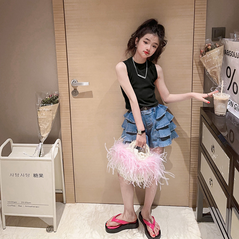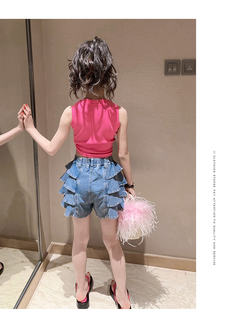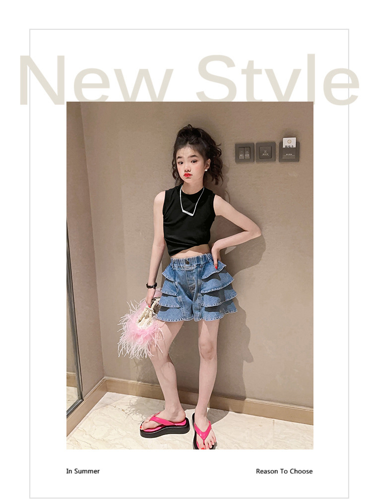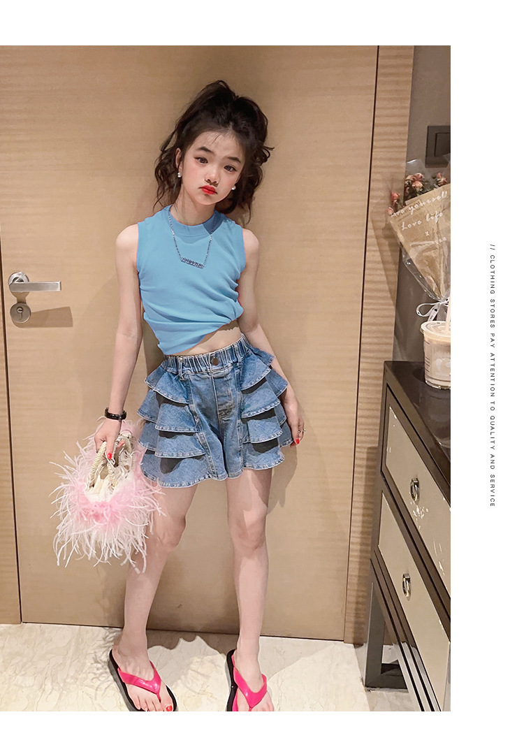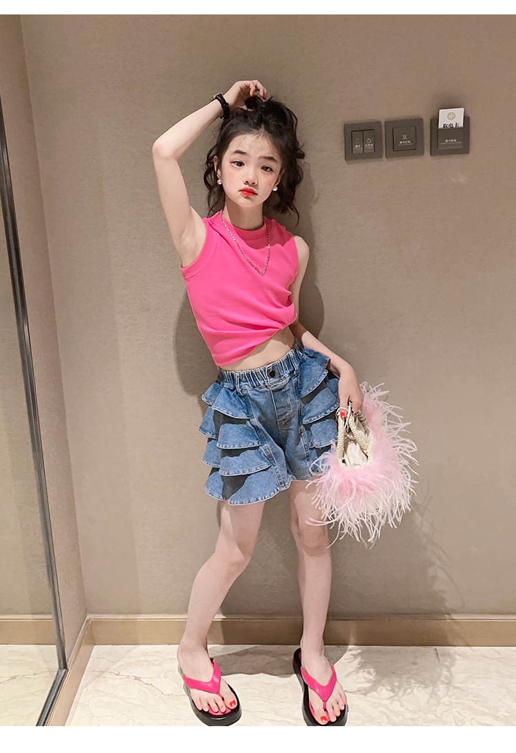 여름을위한 소녀 조끼 2025 새로운 어린이 민소매 티셔츠 짧은 소녀 여름 유행 쿨웨어스토어 가기
