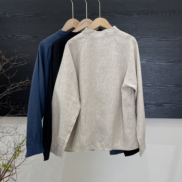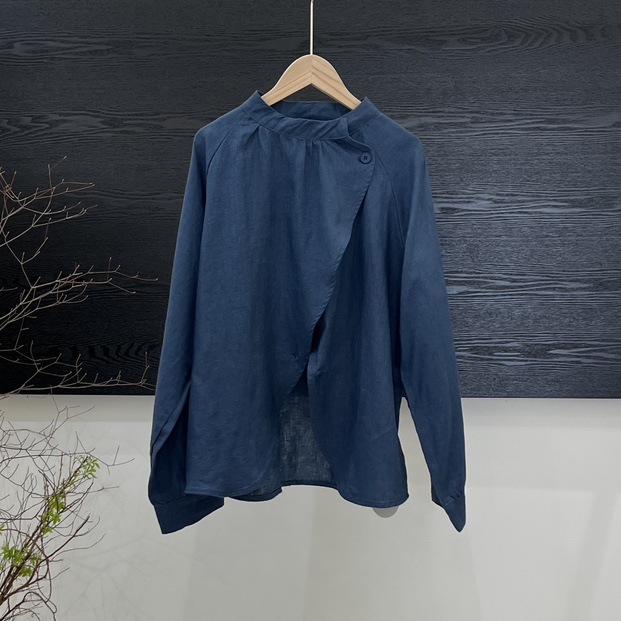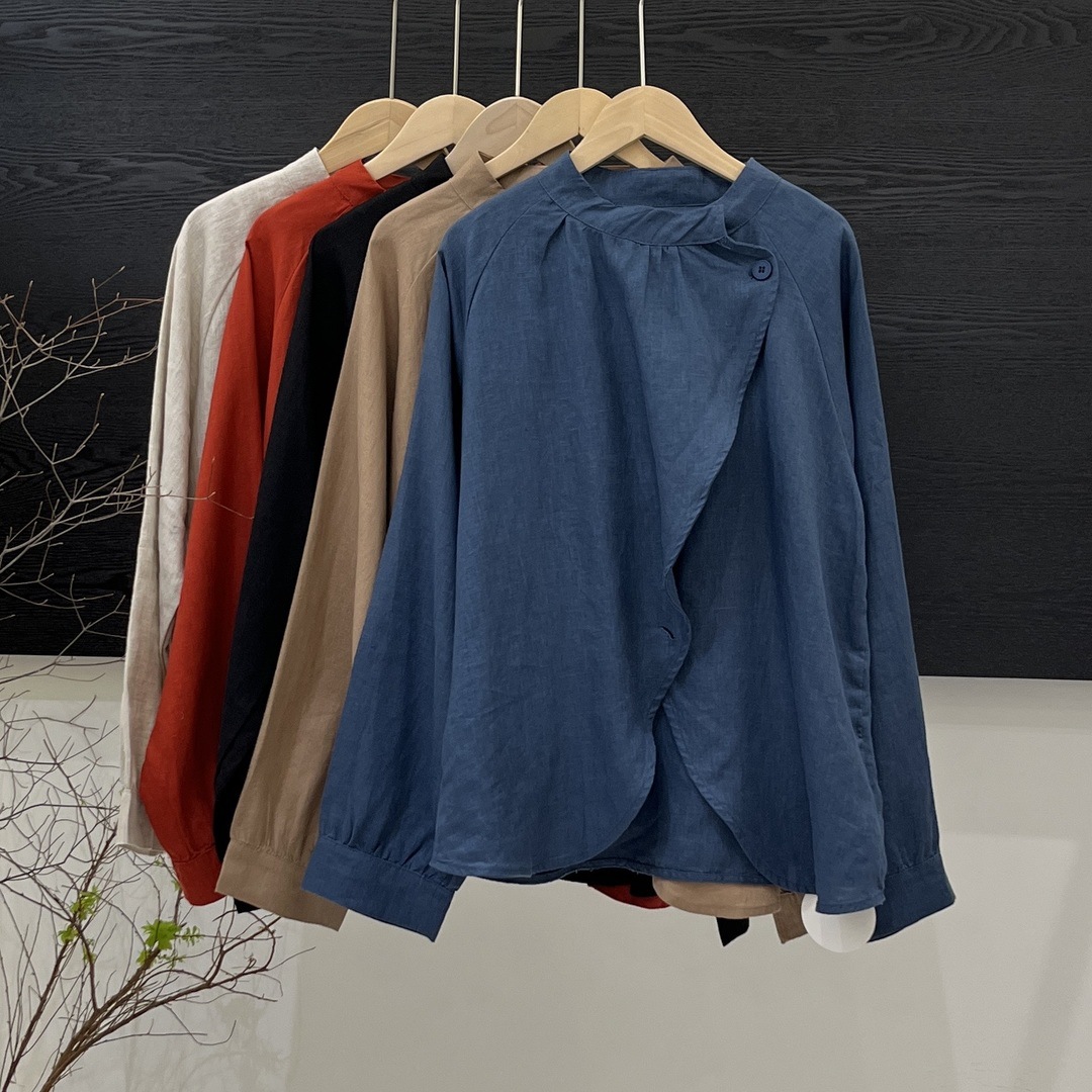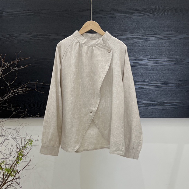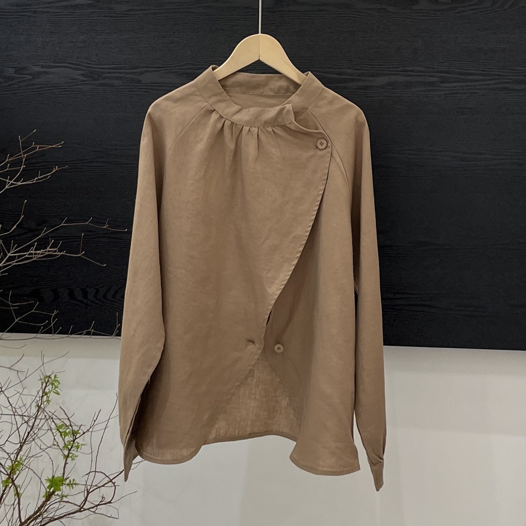 수직 칼라 봄 새로운 문학 스타일 복고풍 스타일 경사 플래켓 버튼 디자인 감각 분할 느슨한 블라우스스토어 가기