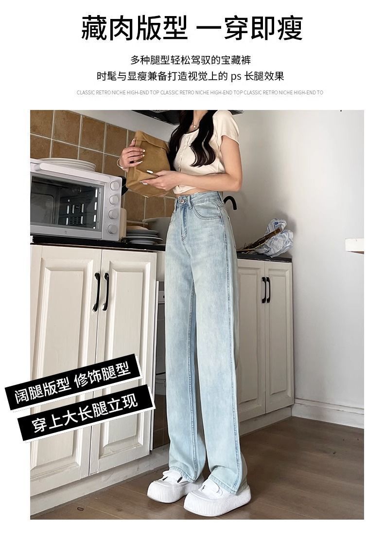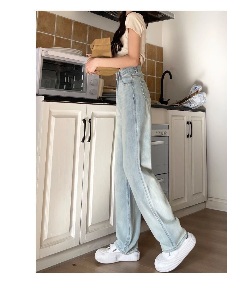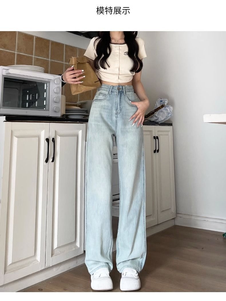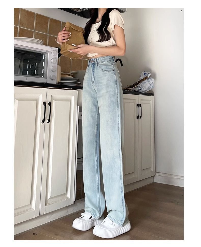 좁은 넓은 다리 청바지 여성용 여름 얇은 2025 새로운 Ins 높은 허리 느슨한 슬리밍 스트레이트 팬츠스토어 가기