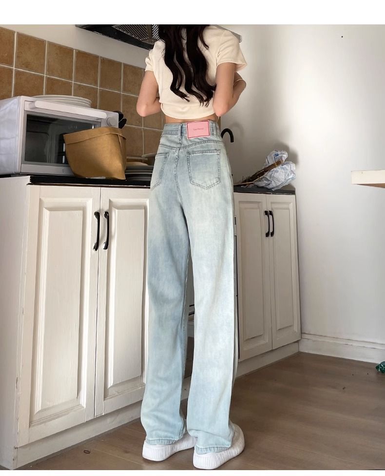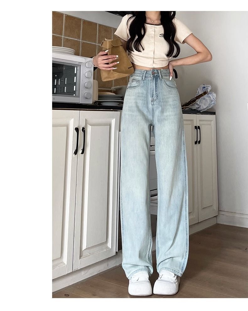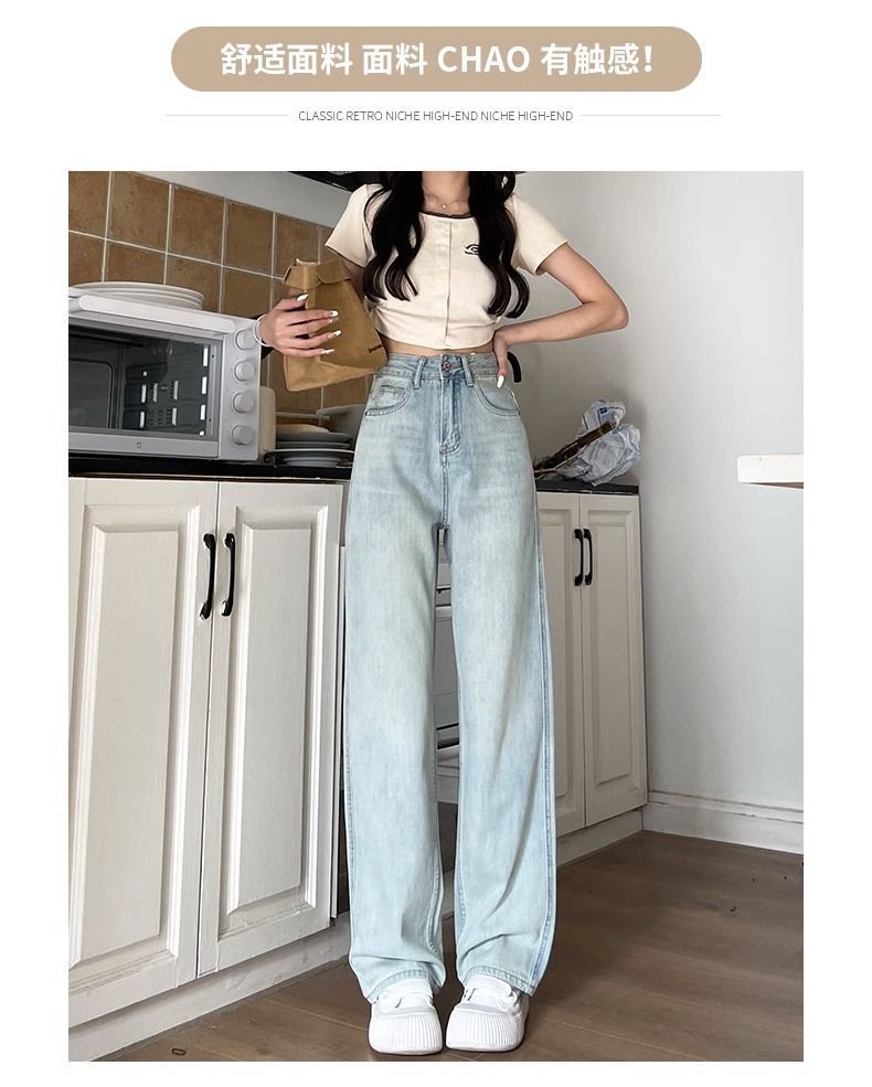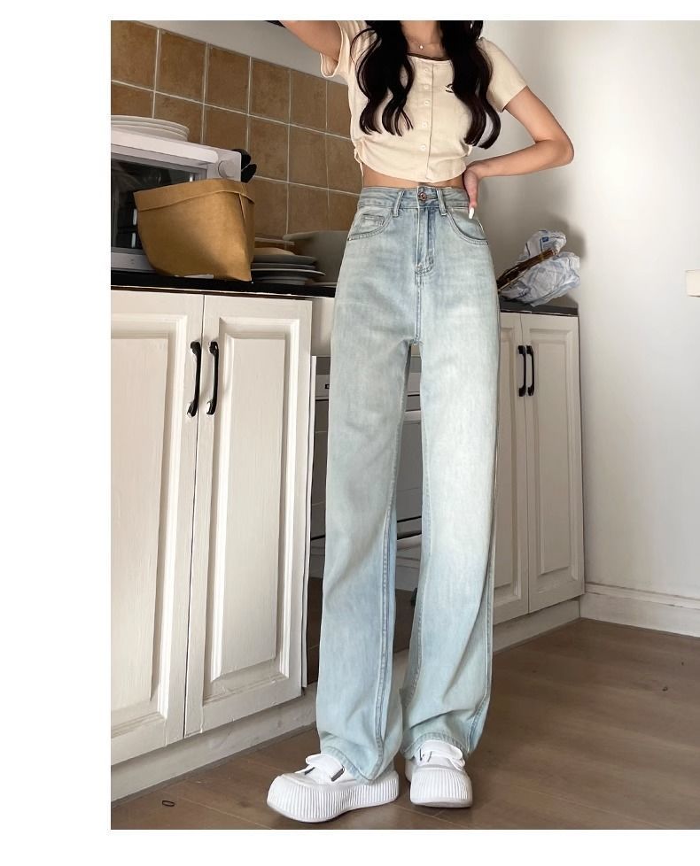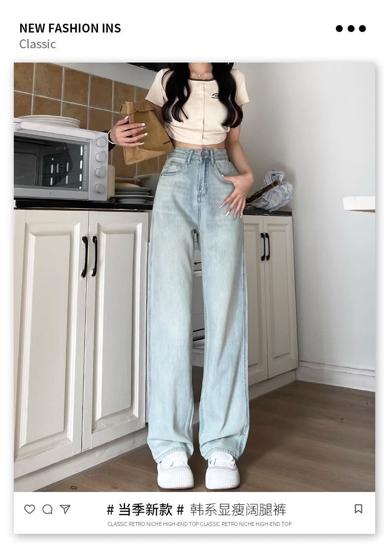 좁은 넓은 다리 청바지 여성용 여름 얇은 2025 새로운 Ins 높은 허리 느슨한 슬리밍 스트레이트 팬츠스토어 가기