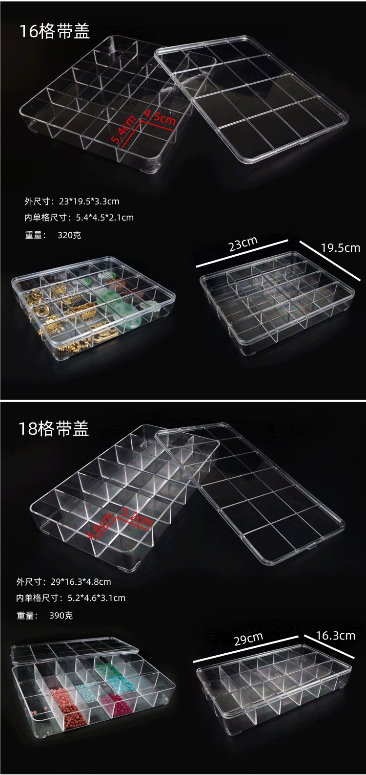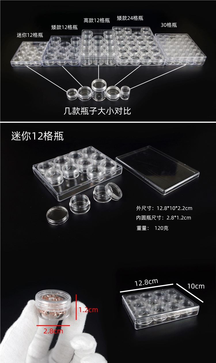 아크릴 투명 보석 저장 상자 보석 저장 상자 느슨한 구슬 저장 병 작은 그리드 병 분류 그리드 디스플레이