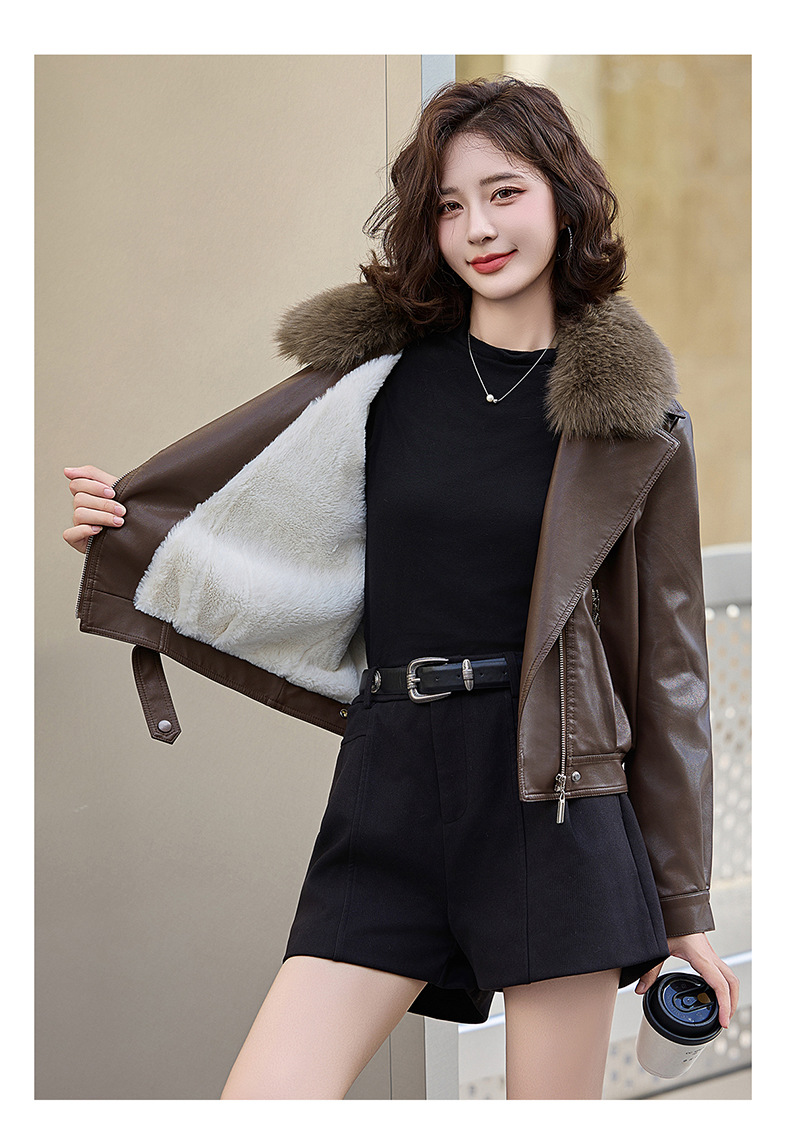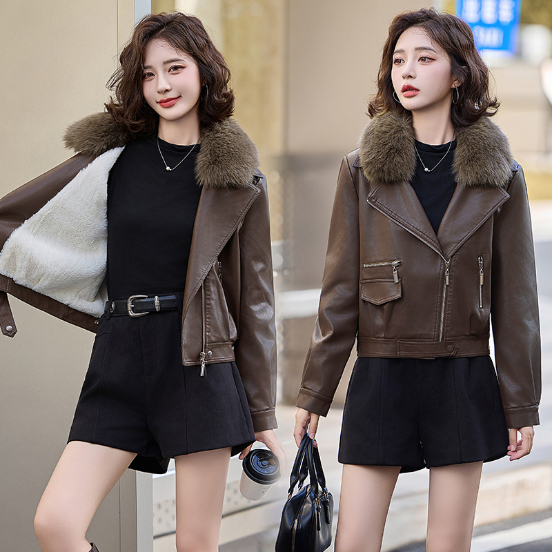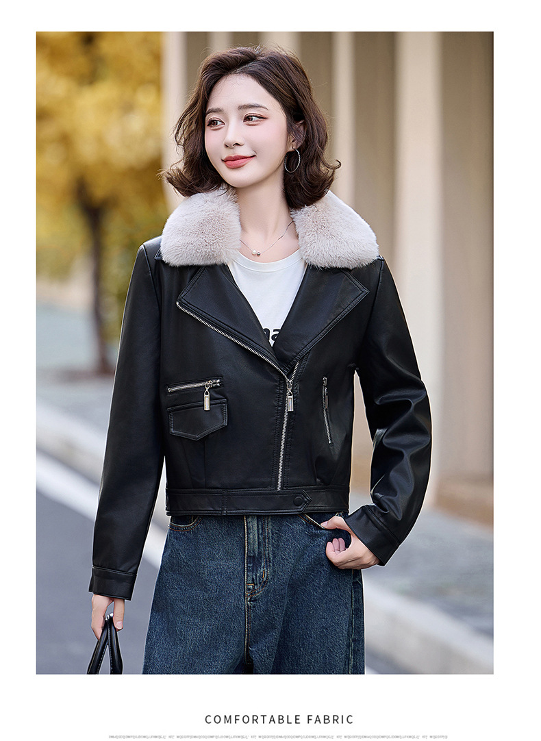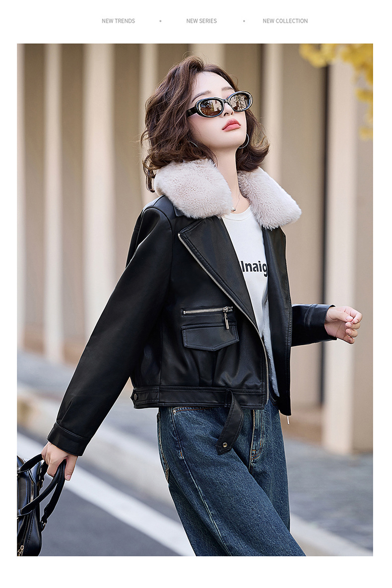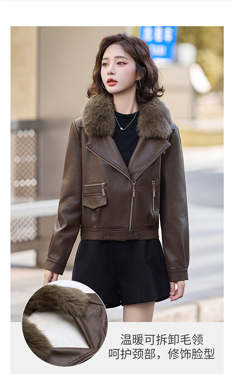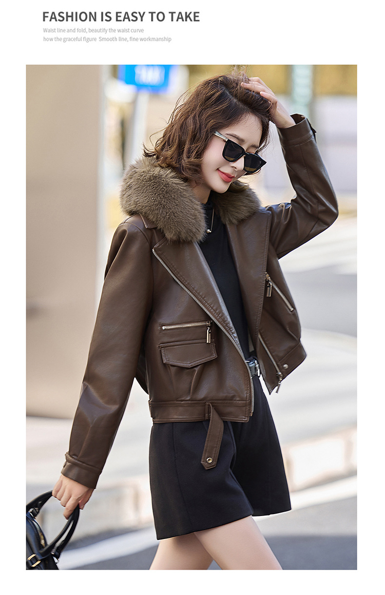 여성 가죽 겨울 여성 의류 새로운 패션 세련된 기모 이동식 모피 칼라 가죽 자켓 코트 ZH1140스토어 가기