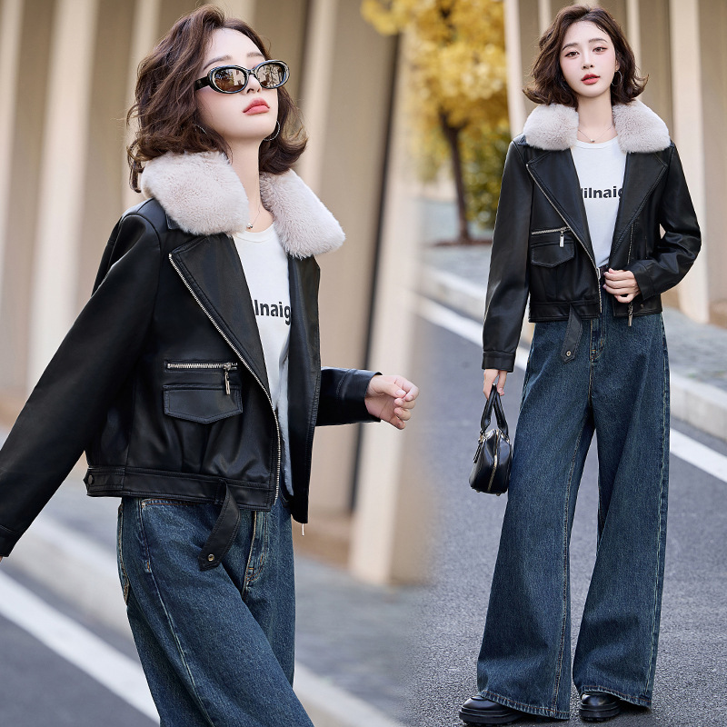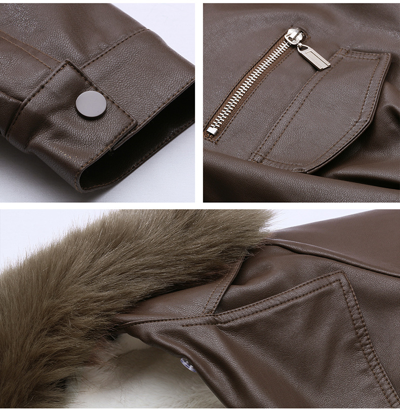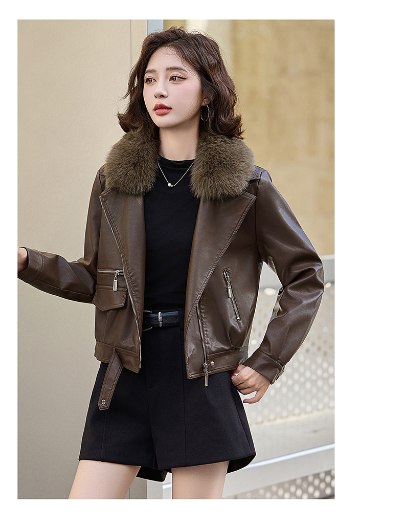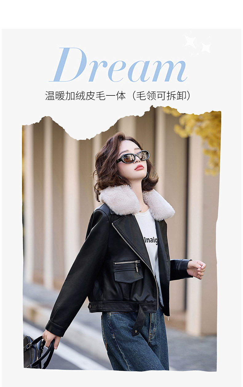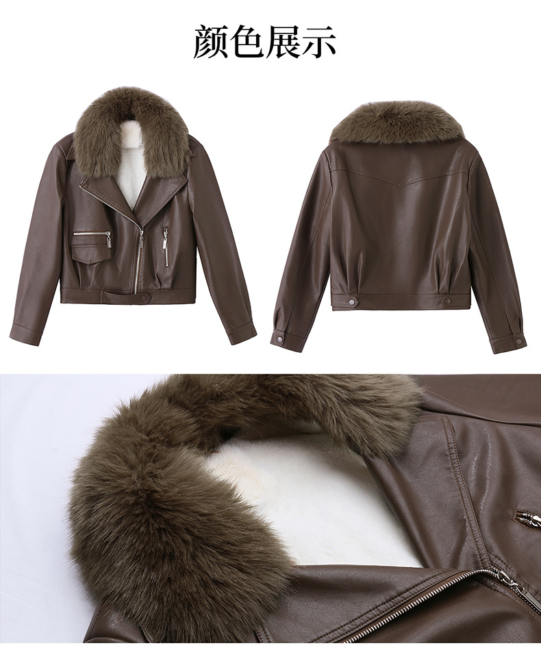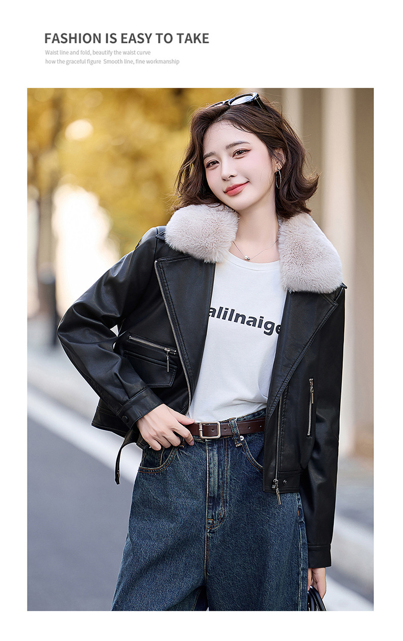 여성 가죽 겨울 여성 의류 새로운 패션 세련된 기모 이동식 모피 칼라 가죽 자켓 코트 ZH1140스토어 가기