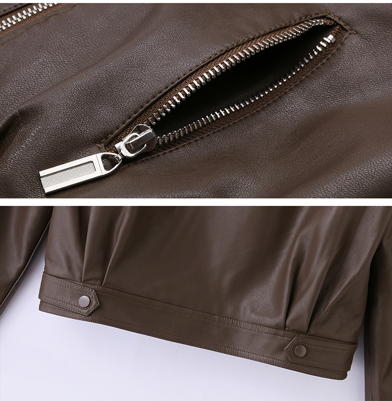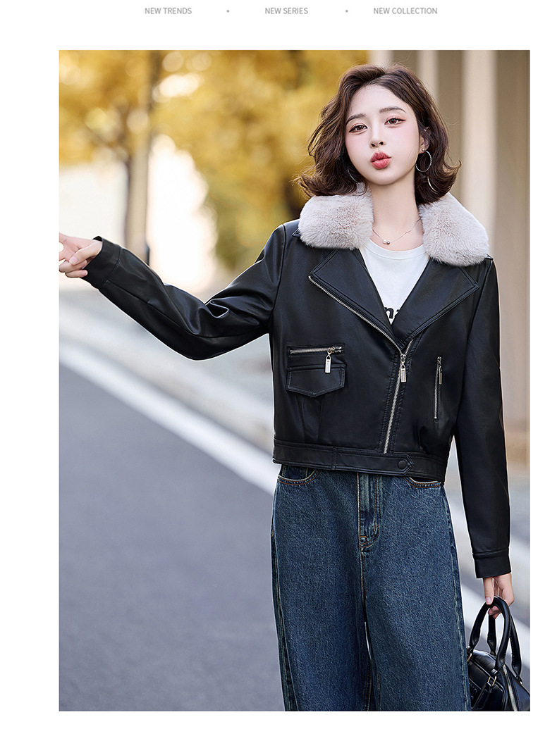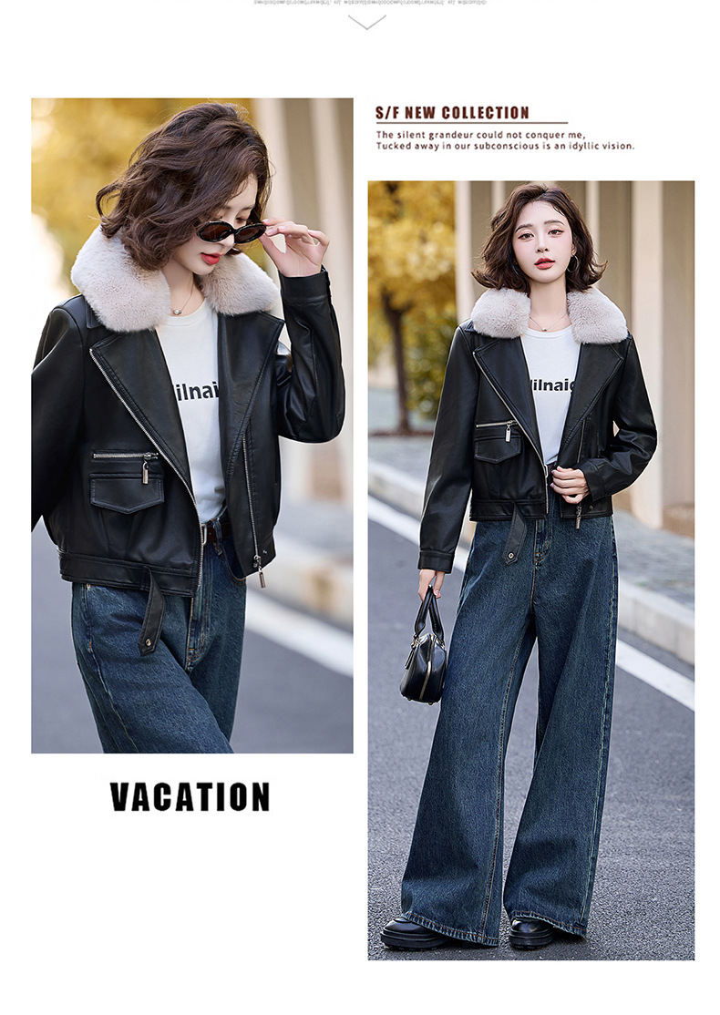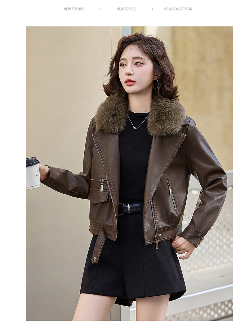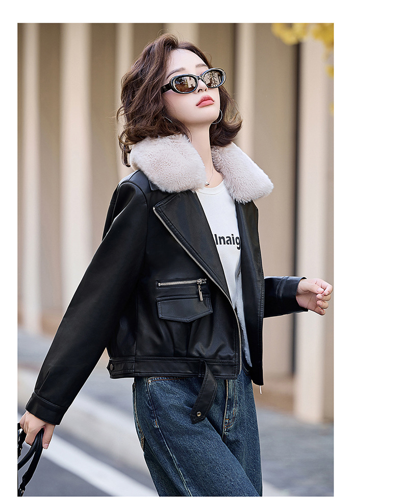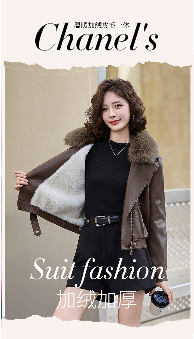 여성 가죽 겨울 여성 의류 새로운 패션 세련된 기모 이동식 모피 칼라 가죽 자켓 코트 ZH1140스토어 가기