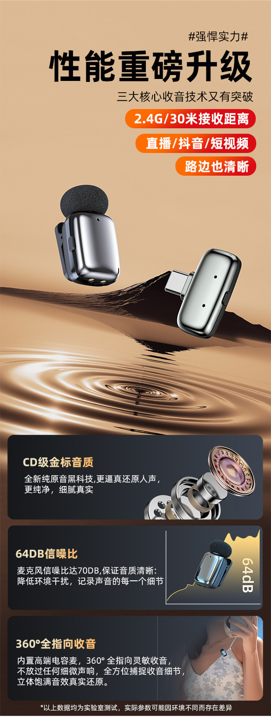 2025년 신형 초소형 마이크 MINI 클립온 마이크 라이브 방송 촬영 소음 감소 리버브 장비