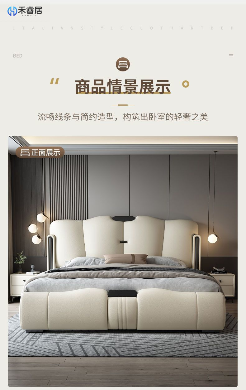 이탈리아 빛 럭셔리 가죽 침대 마스터 침실 현대 간단한 크림 스타일 가죽 아트 침대 부드러운 가방 침실 보관 침대 럭셔리 웨딩 침대스토어 가기