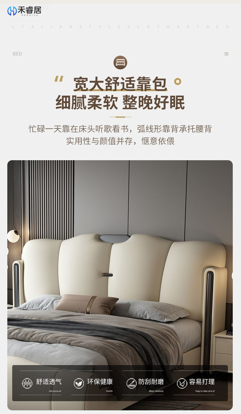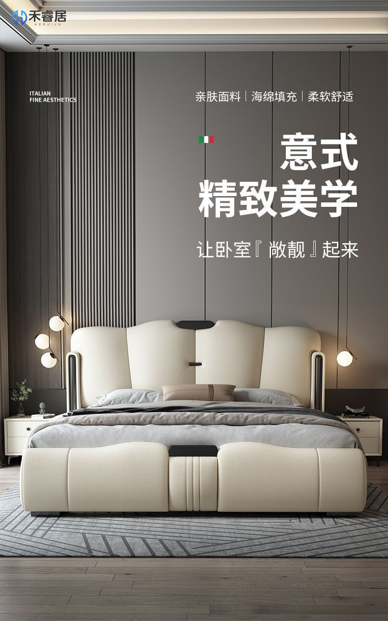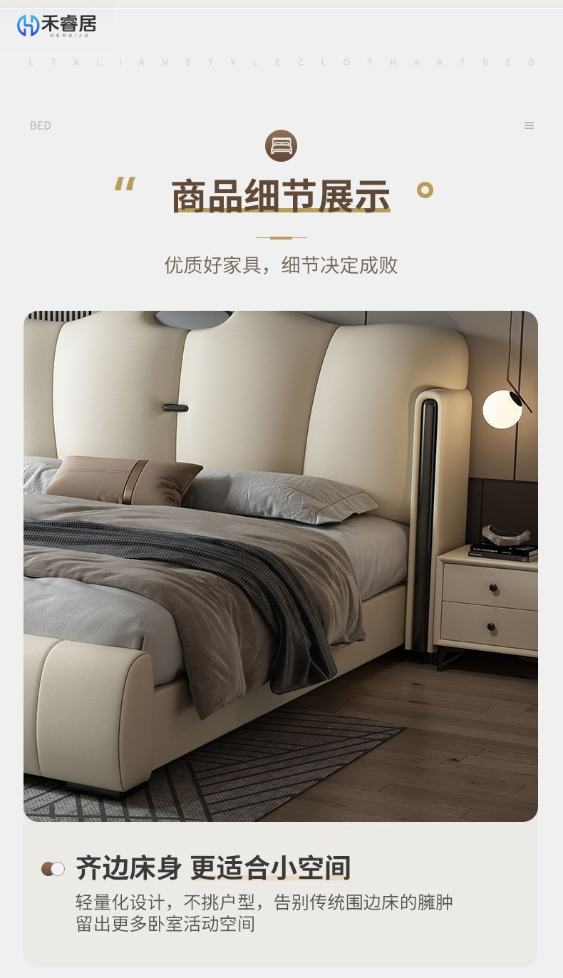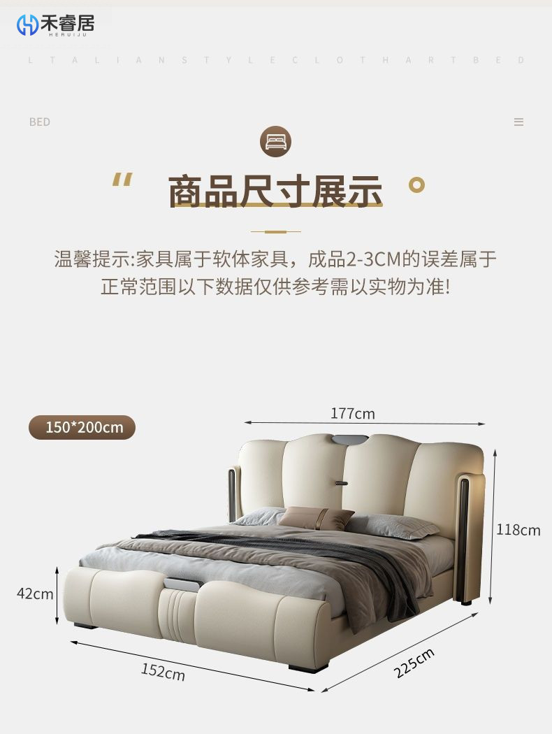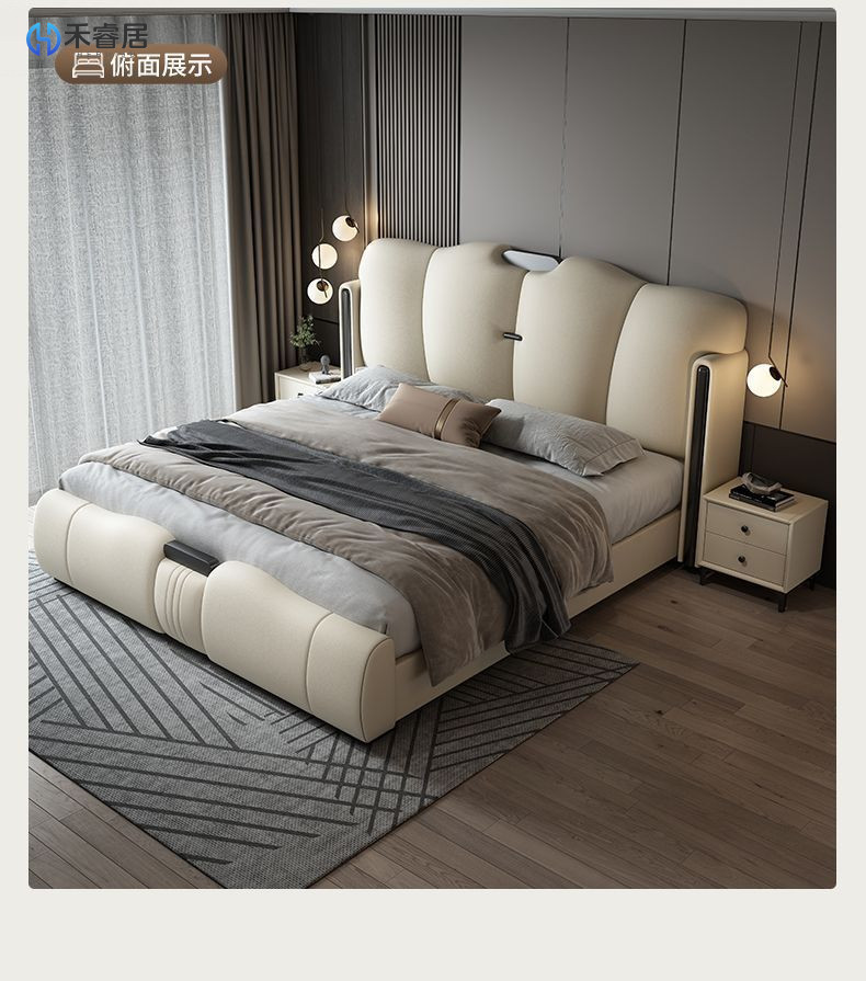 • [고급 가죽 침대] + 캐비닛 1개 + 5성 소프트 탄성 매트리스