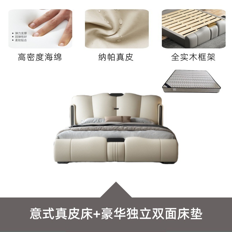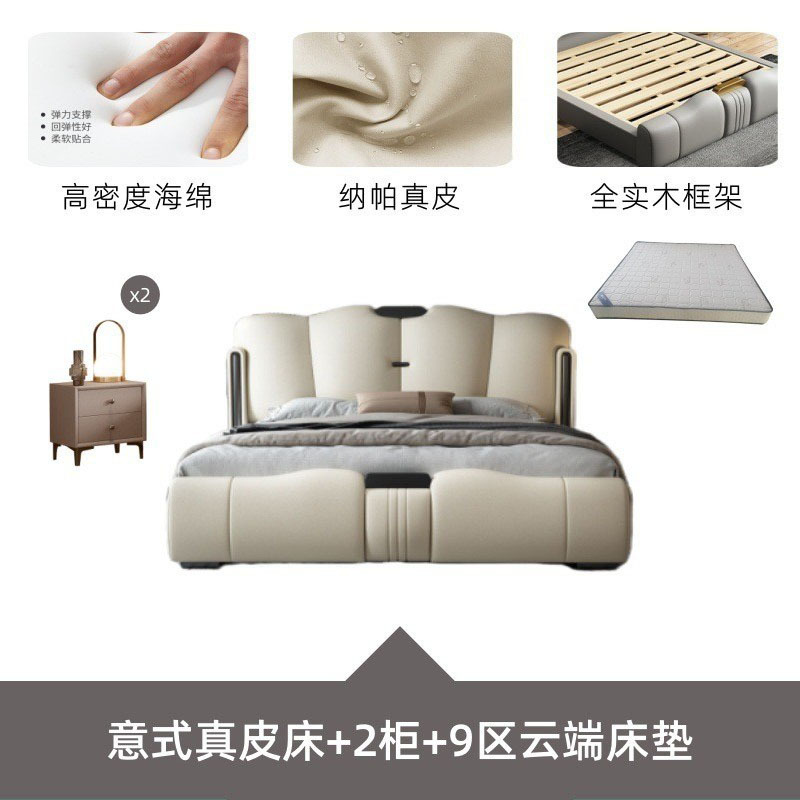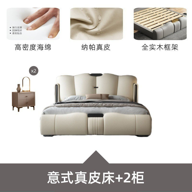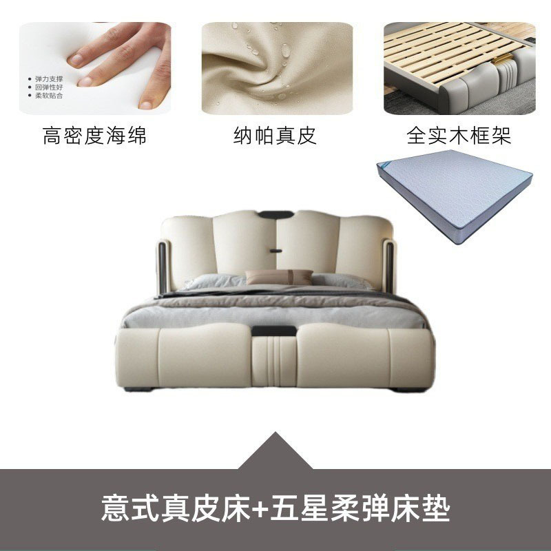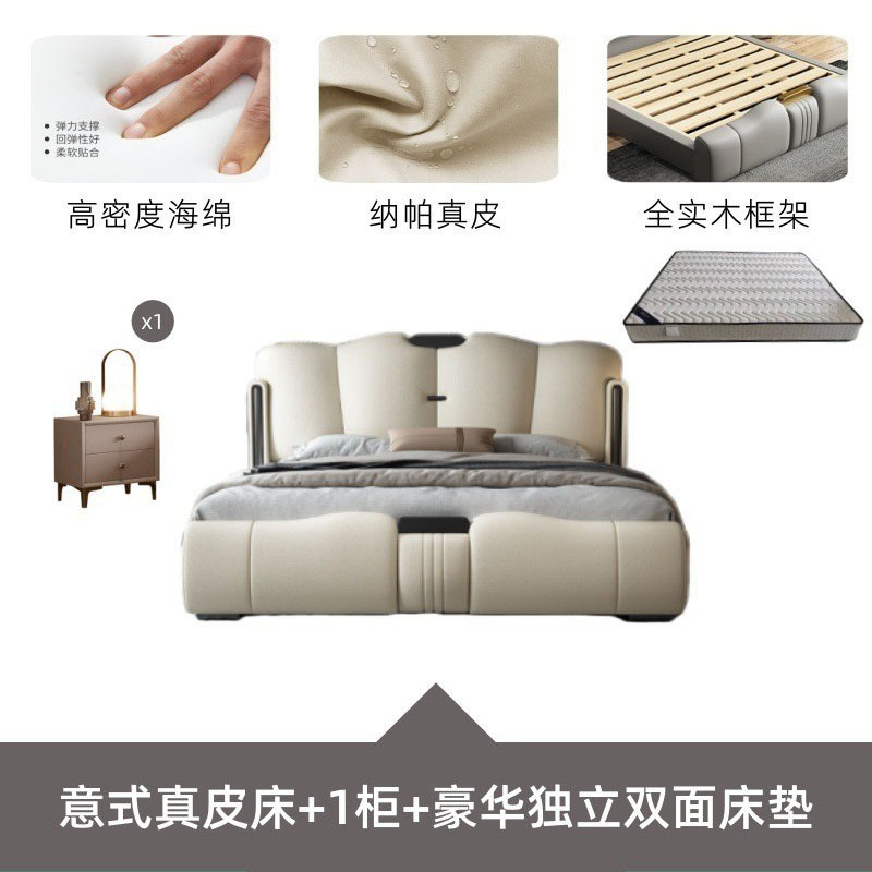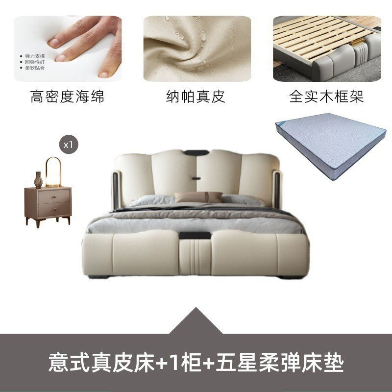 • [고급 가죽 침대] + 수납장 2개 + 5성급 부드러운 탄성 매트리스