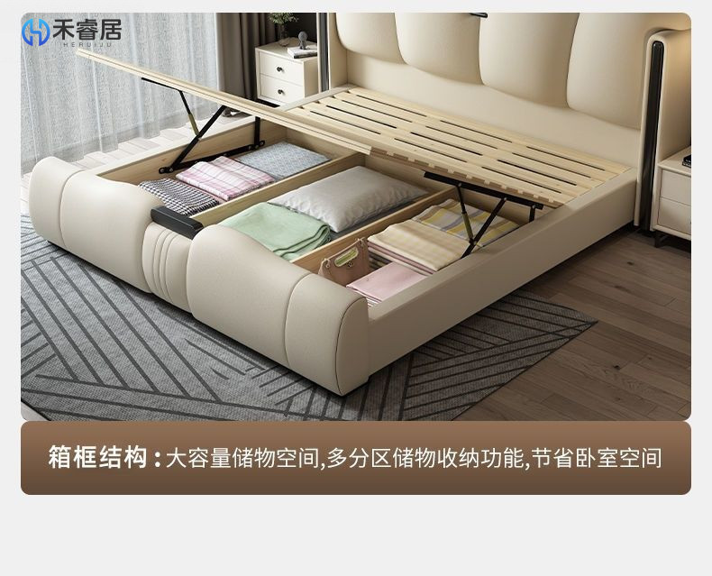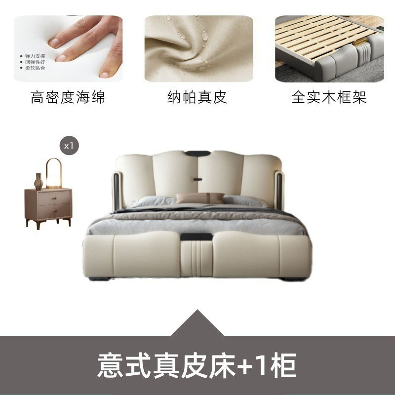 이탈리아 빛 럭셔리 가죽 침대 마스터 침실 현대 간단한 크림 스타일 가죽 아트 침대 부드러운 가방 침실 보관 침대 럭셔리 웨딩 침대