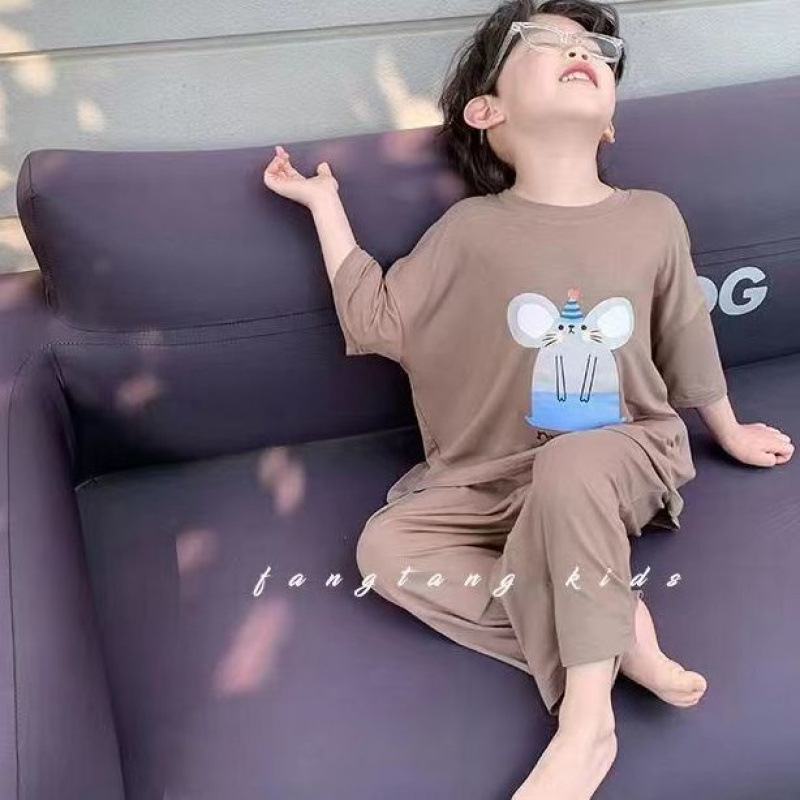 봄 2025 새로운 모달 홈 의류 세트 부드럽고 편안한 중 큰 아이 세트