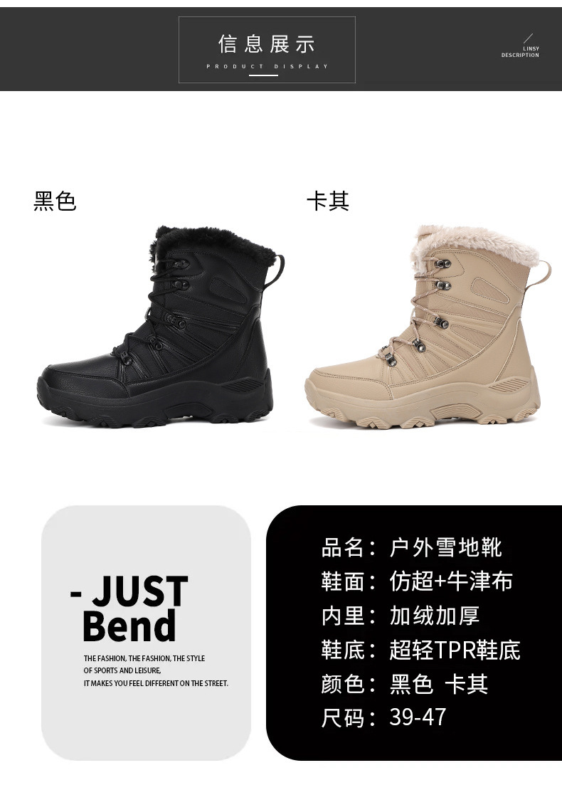 겨울 스포츠 야외 남성용 스노우 부츠 플러스 벨벳 따뜻한 면화 방풍 레이스 업 내마모성 야외 크로스 보더 대형 사이즈스토어 가기