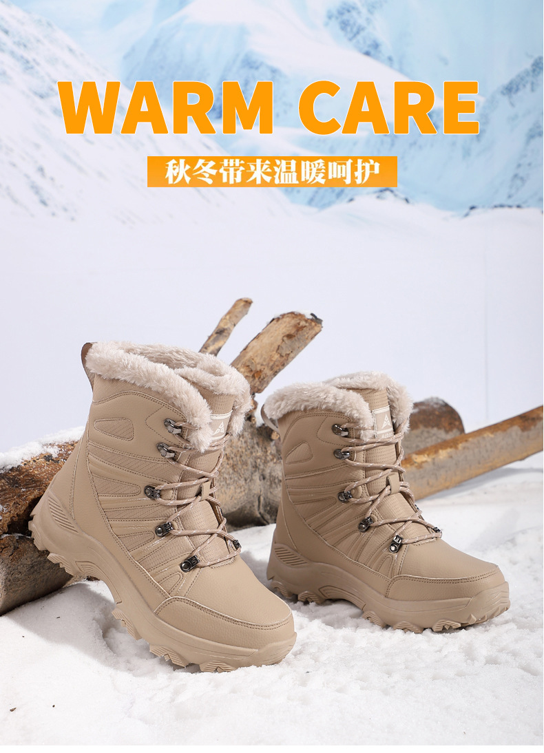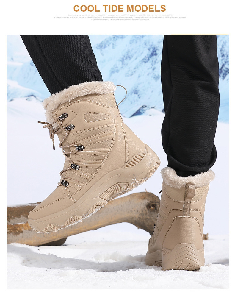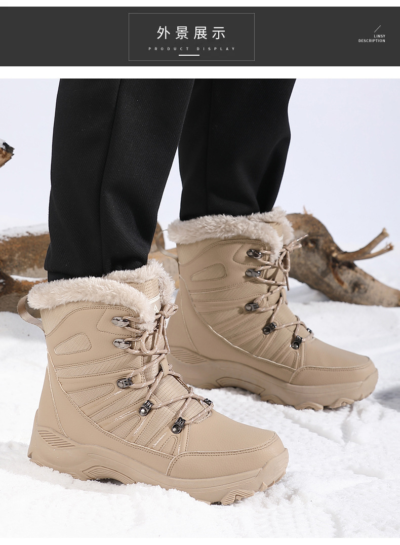겨울 스포츠 야외 남성용 스노우 부츠 플러스 벨벳 따뜻한 면화 방풍 레이스 업 내마모성 야외 크로스 보더 대형 사이즈