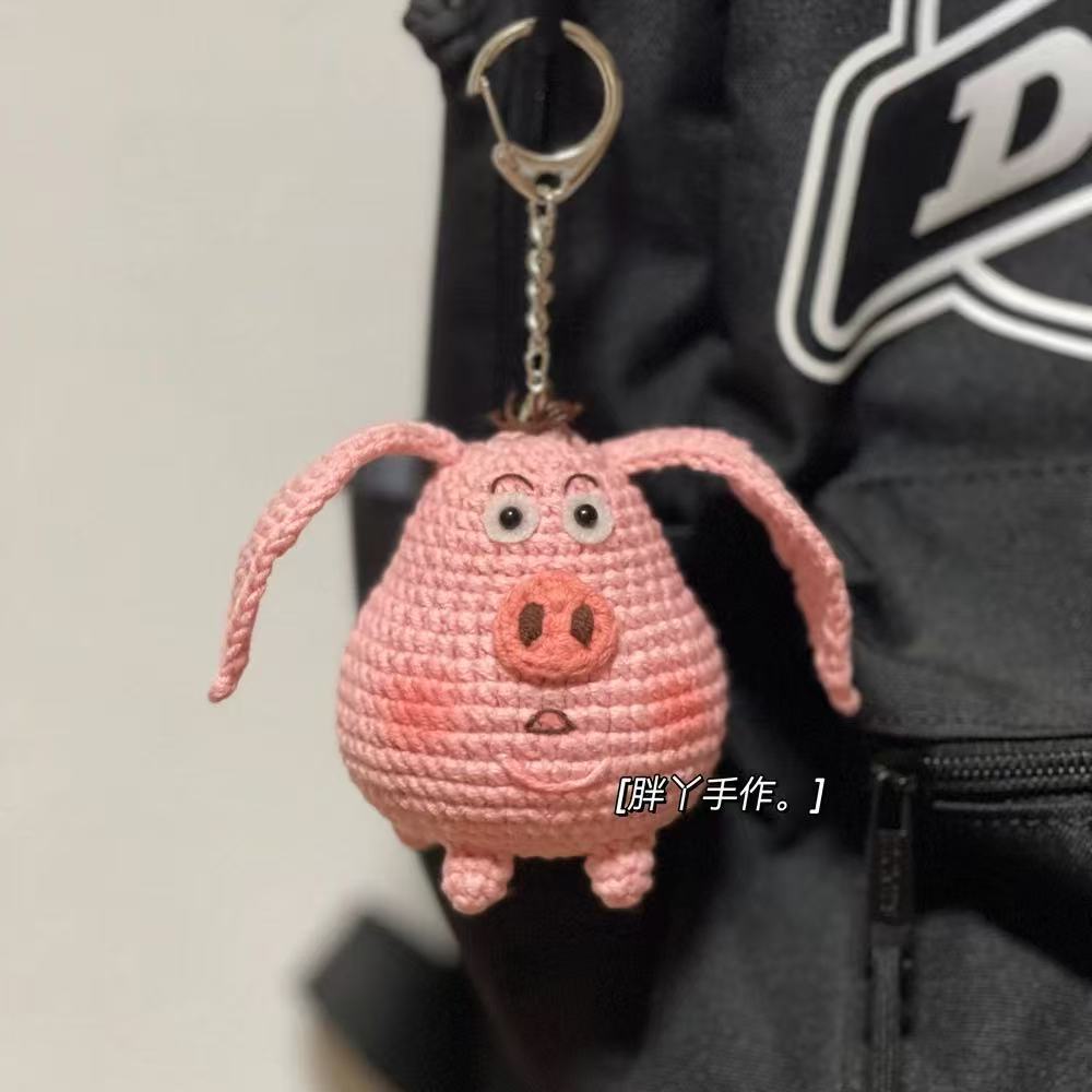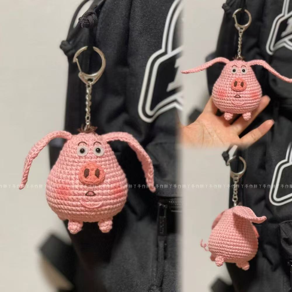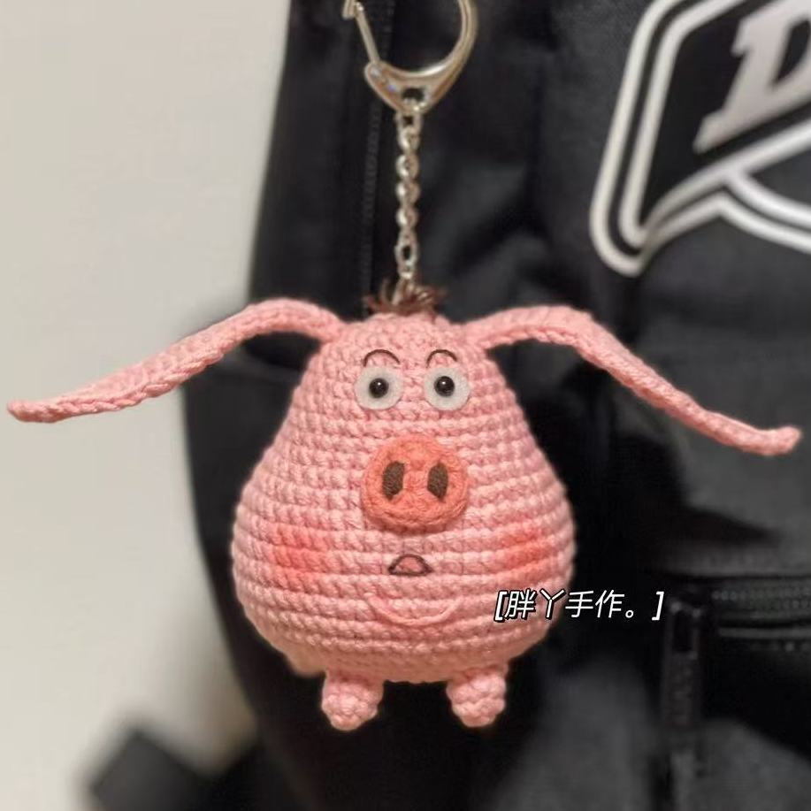 손으로 짠 비행 돼지 소재 가방 양모 크로 셰 뜨개질 인형 돼지 수제 DIY 소재 가방 귀여운 타이이