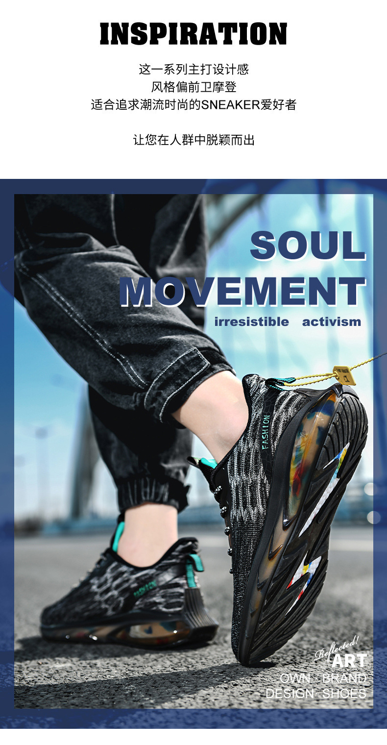 플라이 짠 스포츠 남성 신발 봄과 여름 캐주얼 신발 2023 남성용 새로운 팝콘 메쉬 코코넛 신발스토어 가기