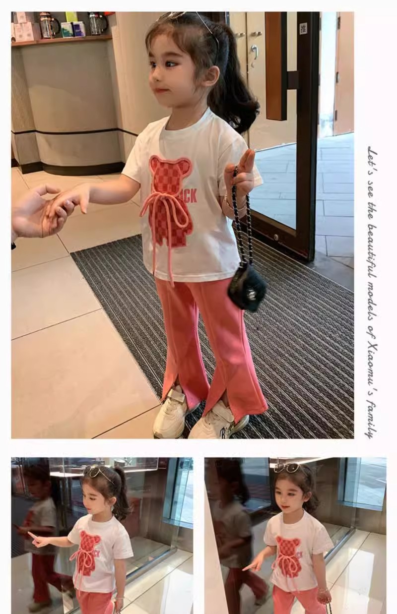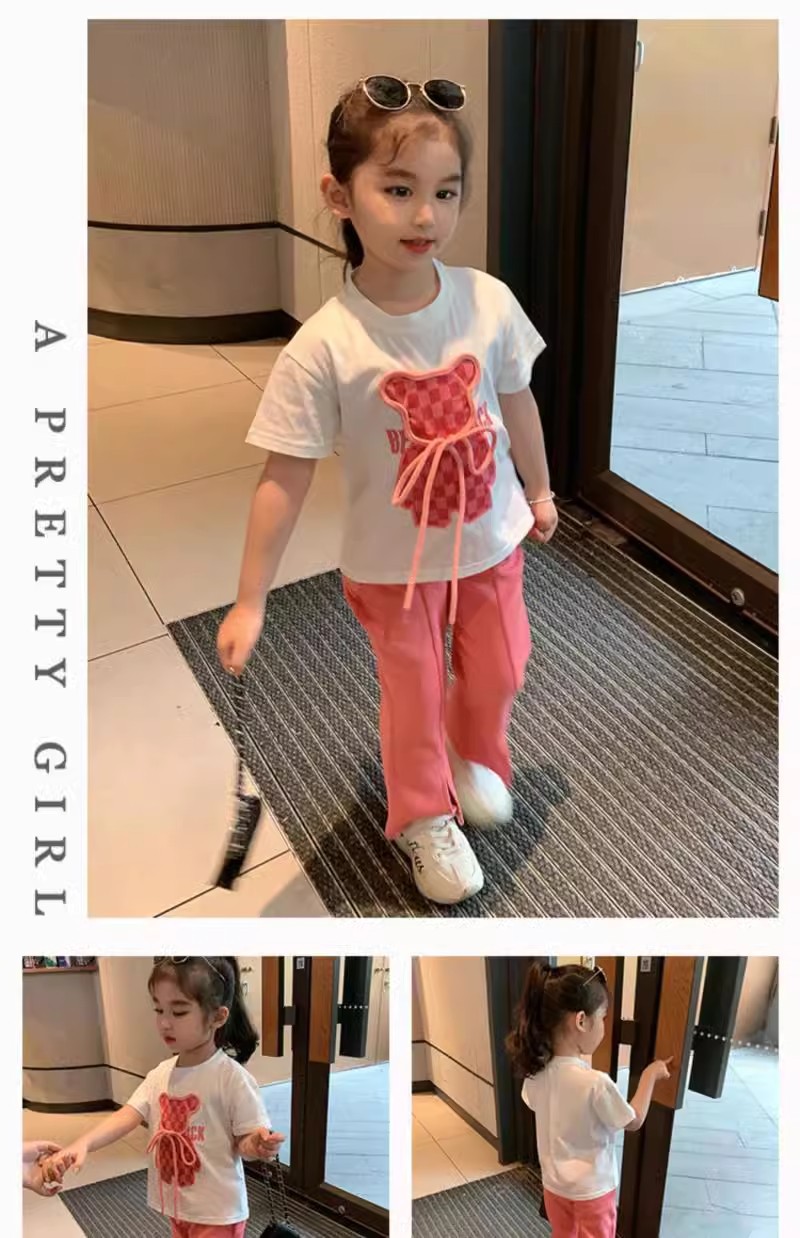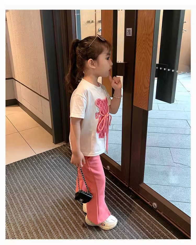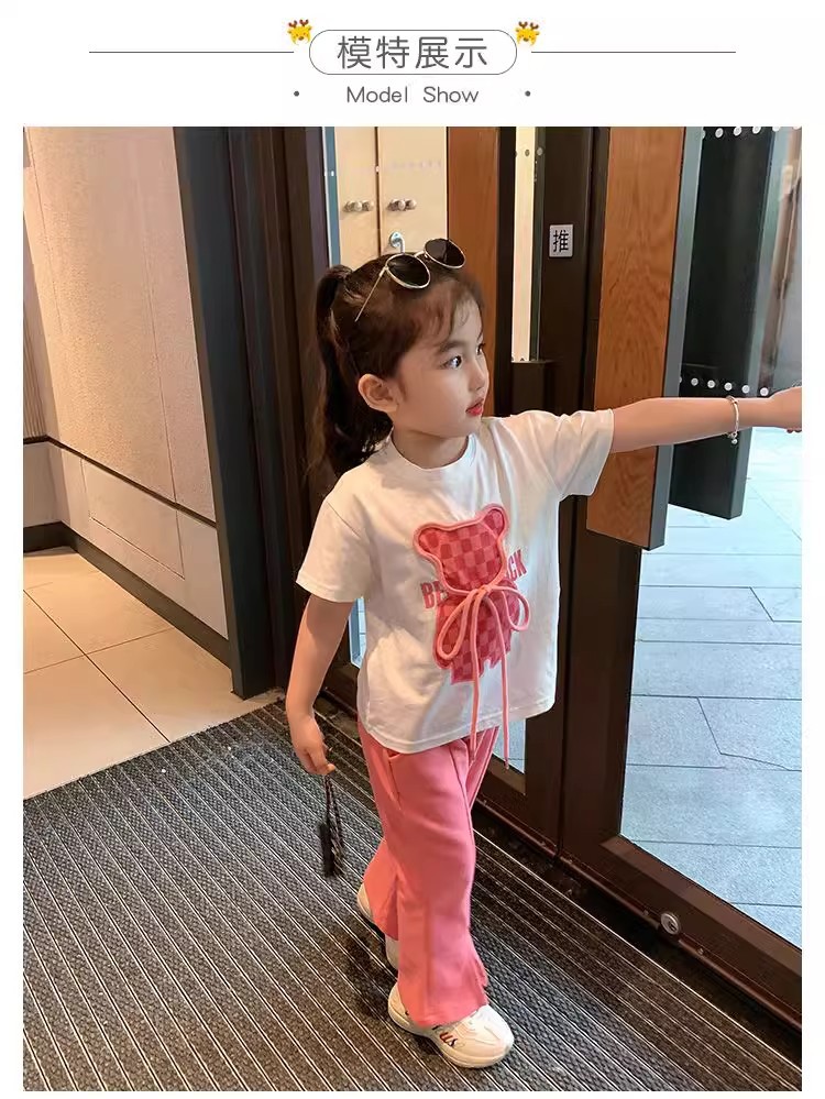 소녀 인터넷 축하 세트 어린이 2025 년 새 여름 만화 티셔츠 안녕 외국식 플라 바지 반팔 투피스 세트스토어 가기