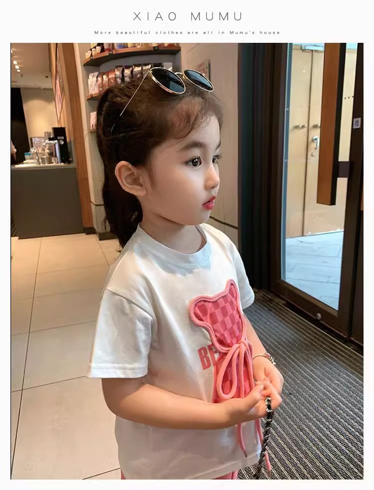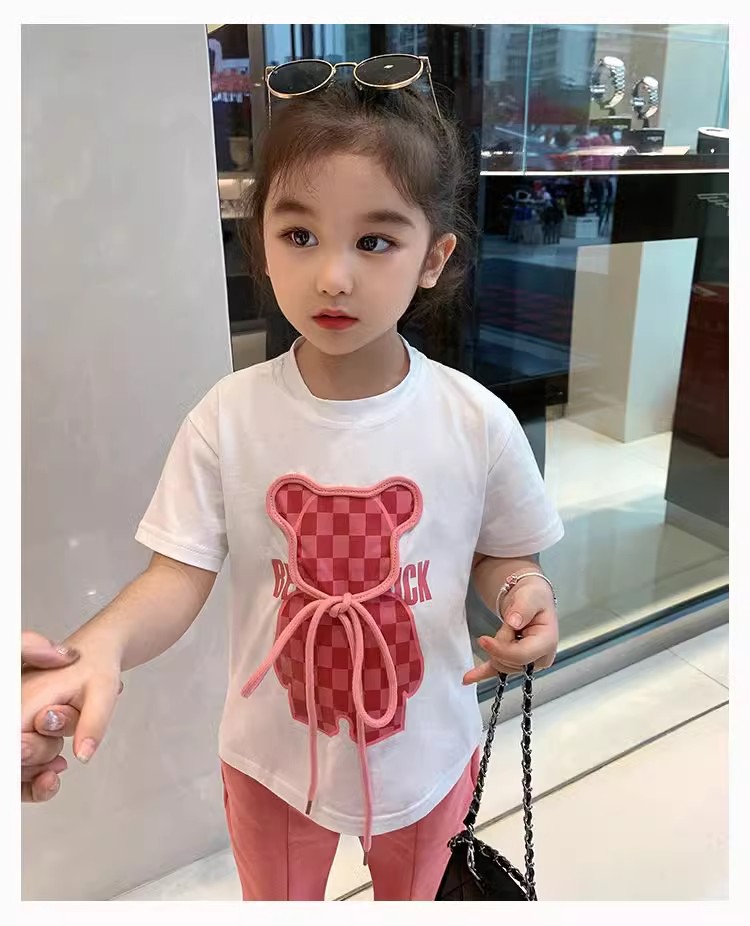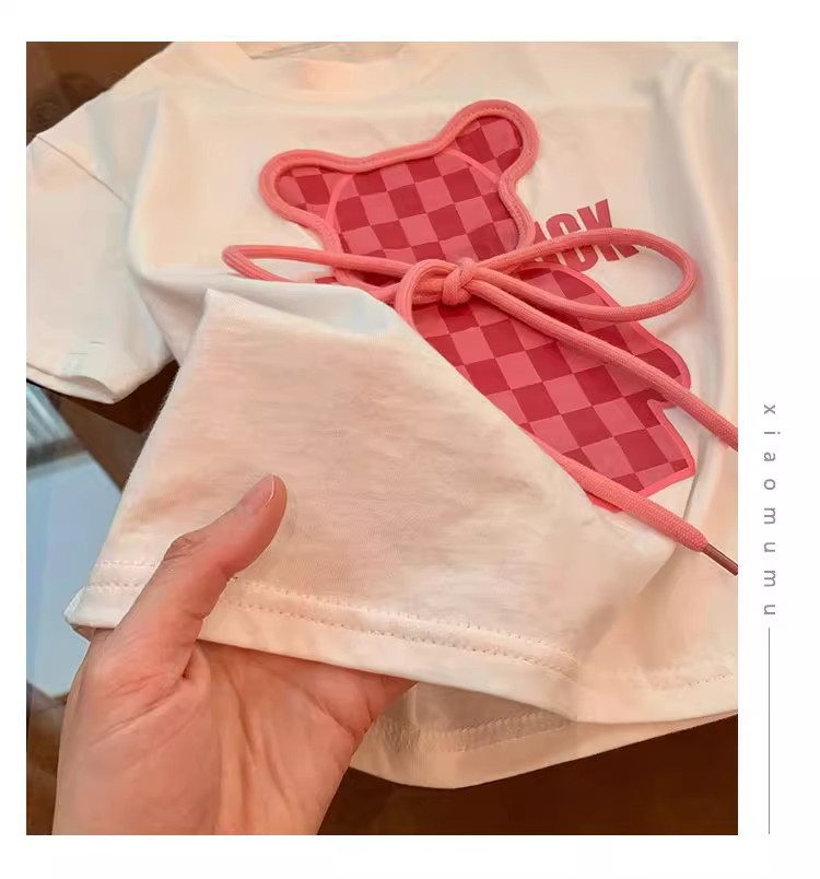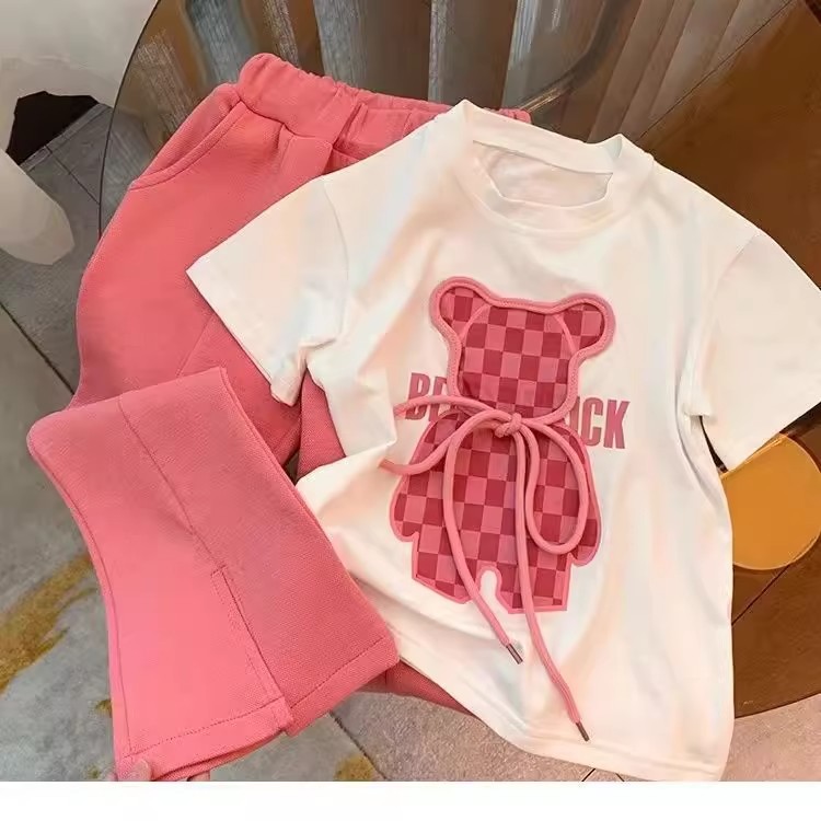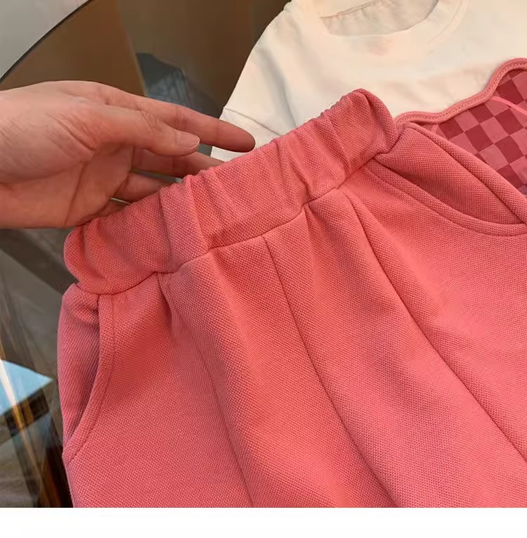 소녀 인터넷 축하 세트 어린이 2025 년 새 여름 만화 티셔츠 안녕 외국식 플라 바지 반팔 투피스 세트스토어 가기