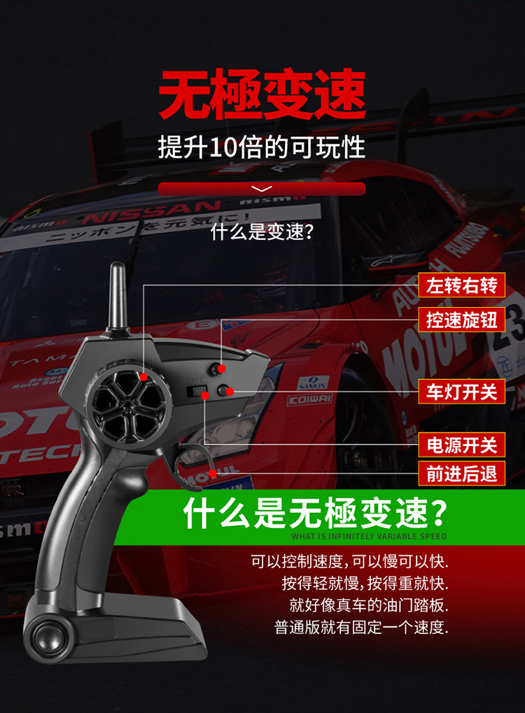 • 레드 GTR [리모컨 자동차 조명 + 기어 속도 제한]