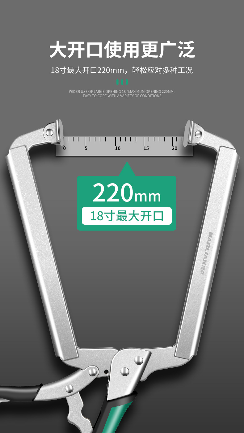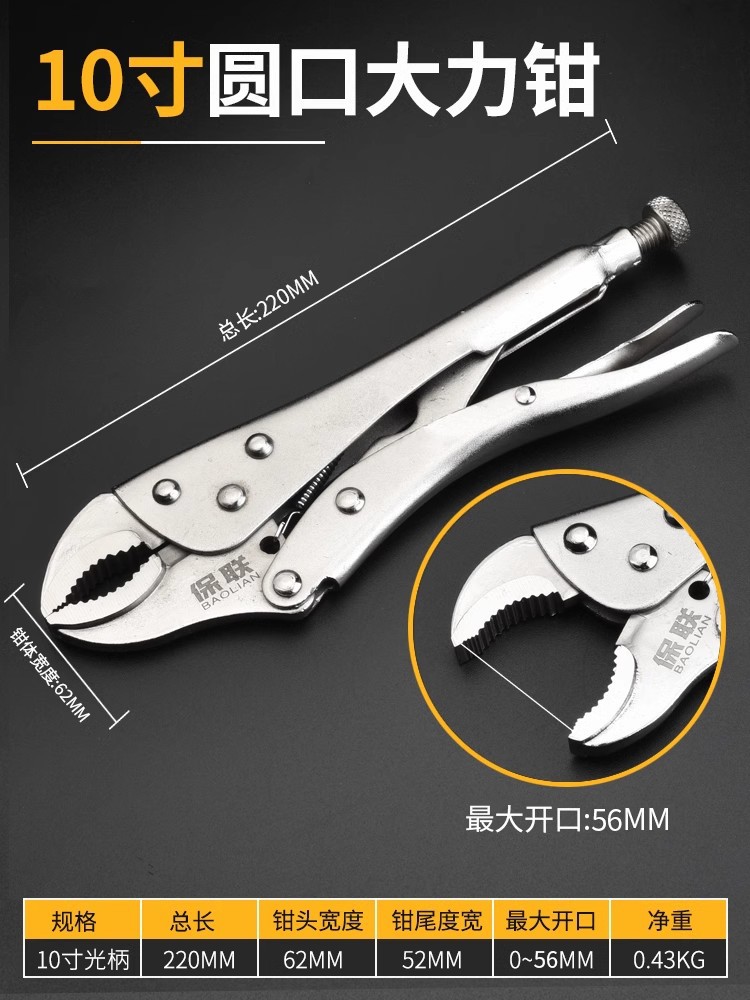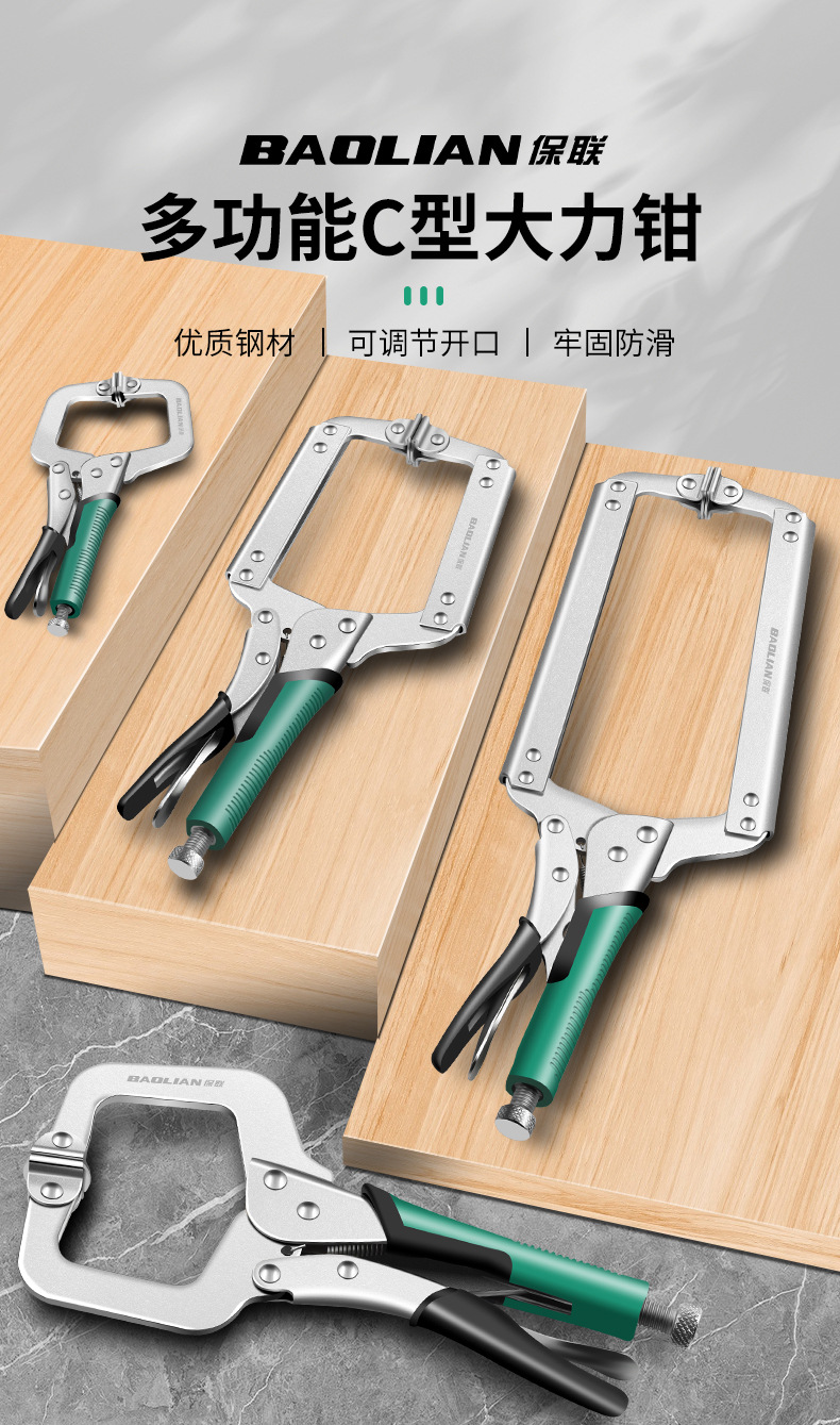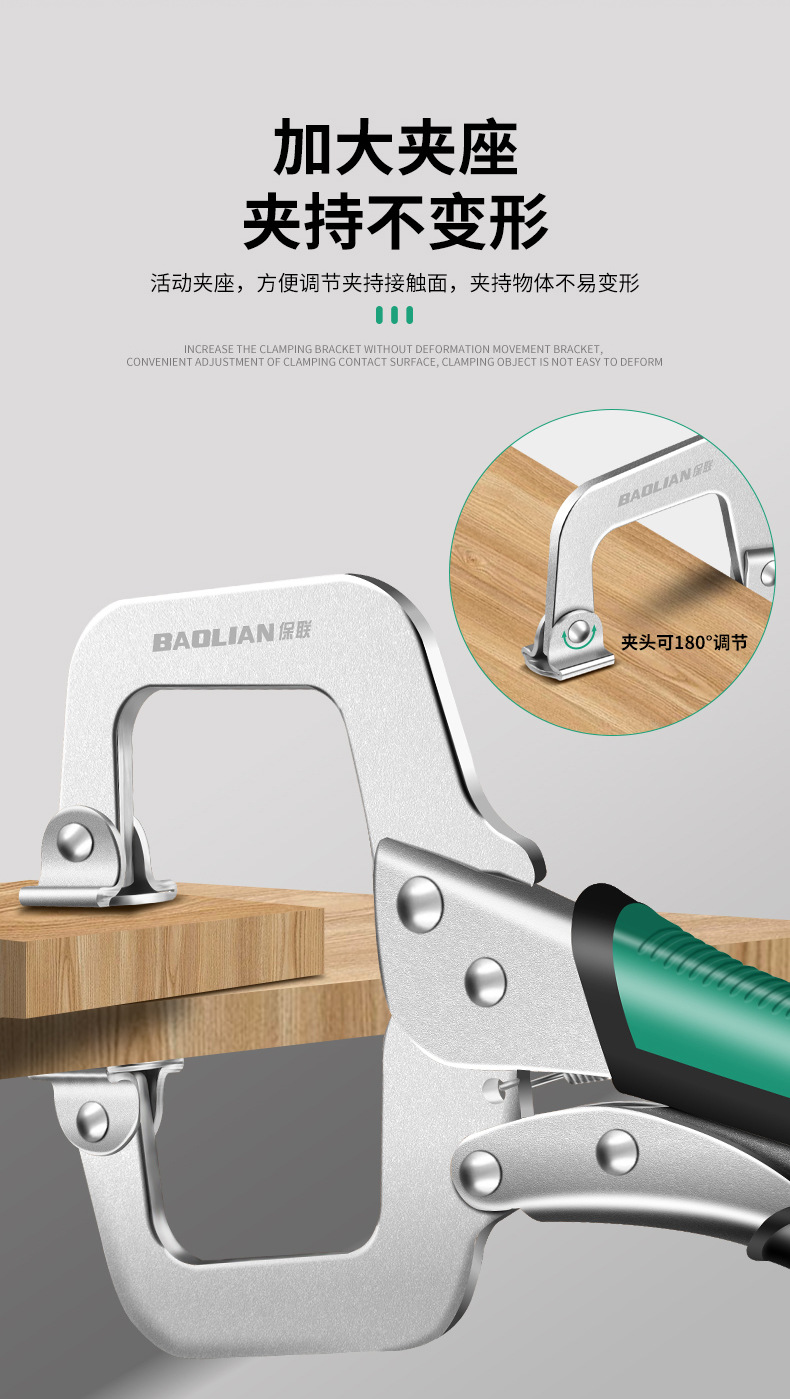 Baolian 대형 펜치 다기능 대형 오픈 대형 포스 클램프 와이드 입 목공 고정 대형 파워 펜치 c 형 압력 펜치