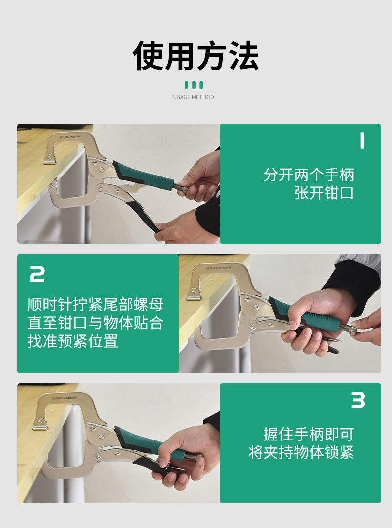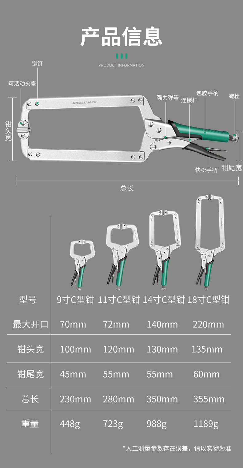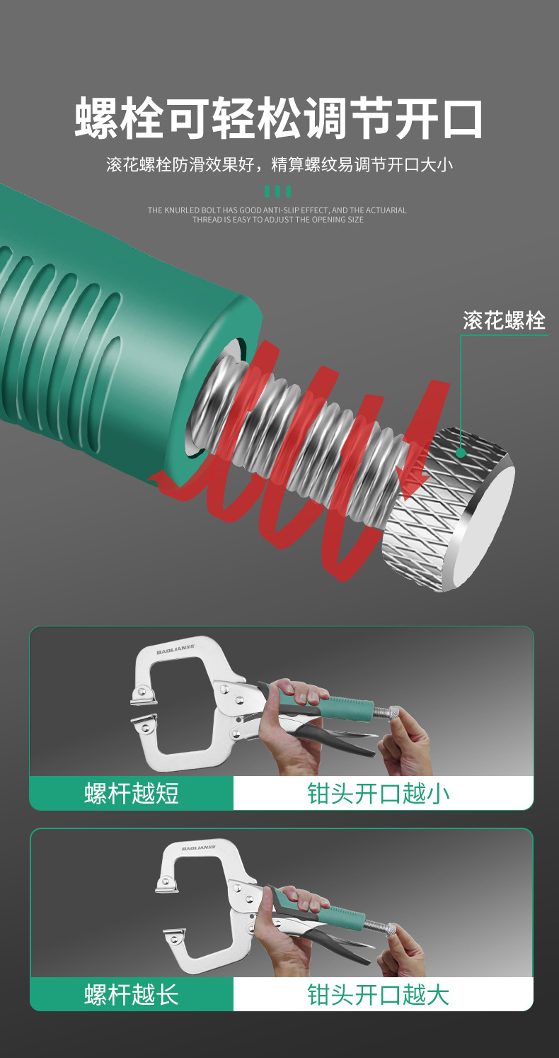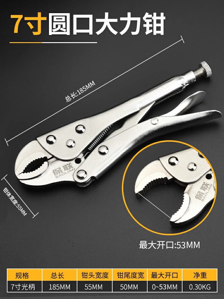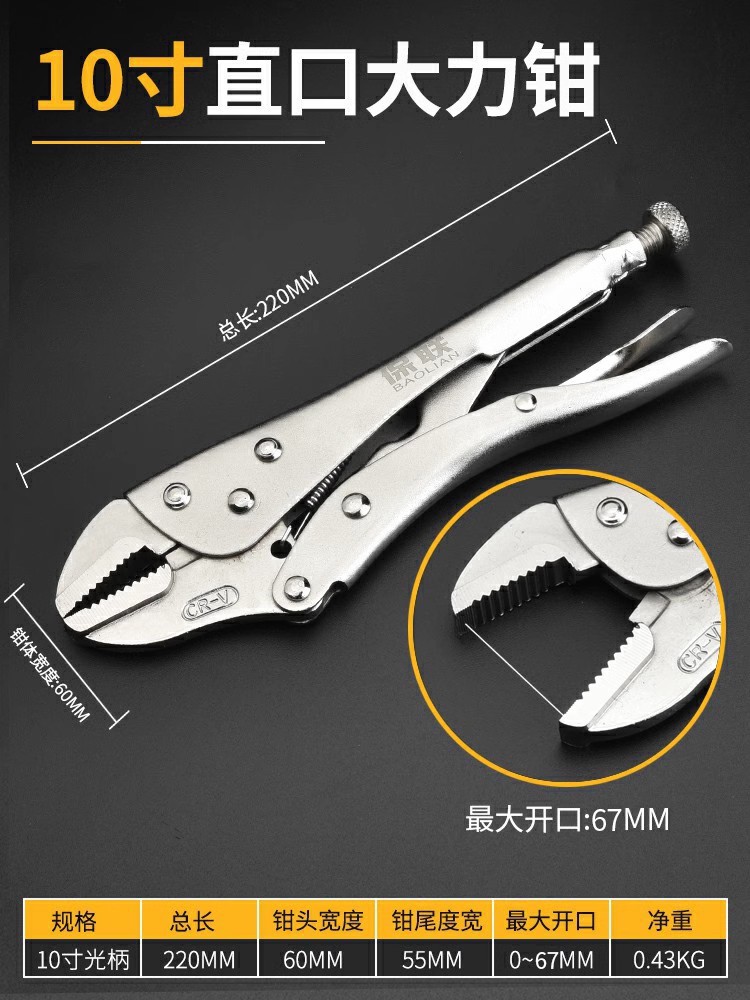 Baolian 대형 펜치 다기능 대형 오픈 대형 포스 클램프 와이드 입 목공 고정 대형 파워 펜치 c 형 압력 펜치
