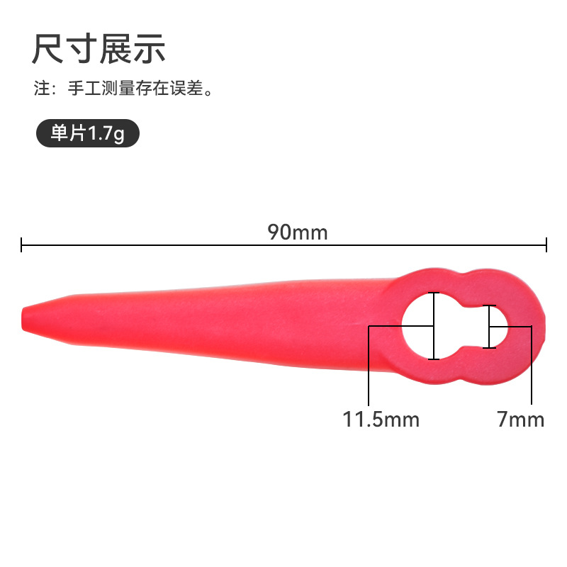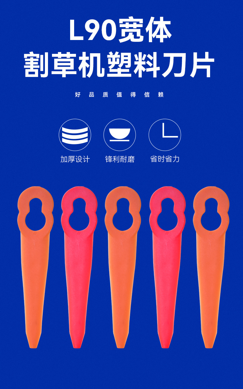 L90 와이드 바디 잔디 깎는 기계 플라스틱 블레이드 ABS 깎기 블레이드 컬러 플라스틱 블레이드 조리개 11.5*7스토어 가기