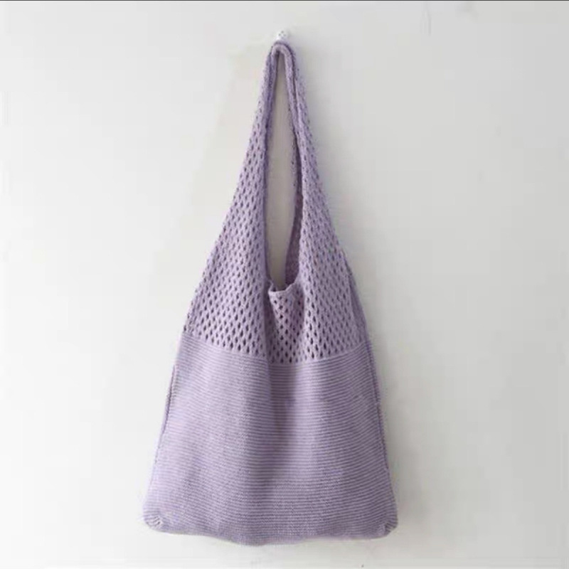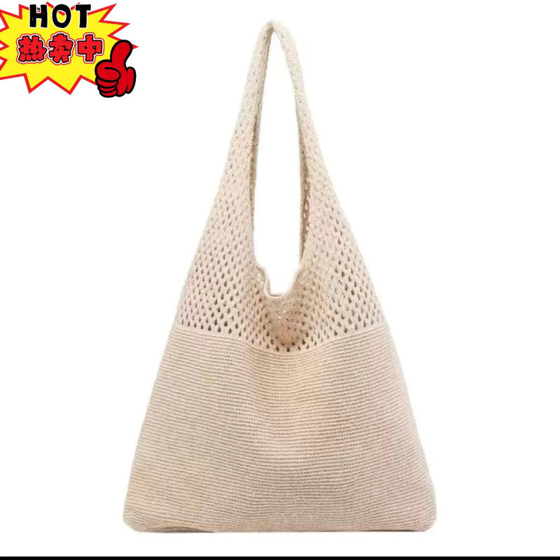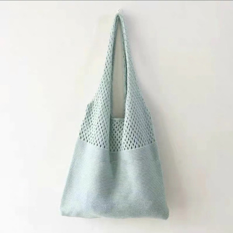 간단한 새로운 한국 빈티지 패션 니트 빈 어깨 울 캐주얼 대용량 쇼핑백 짠 가방