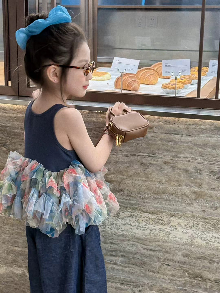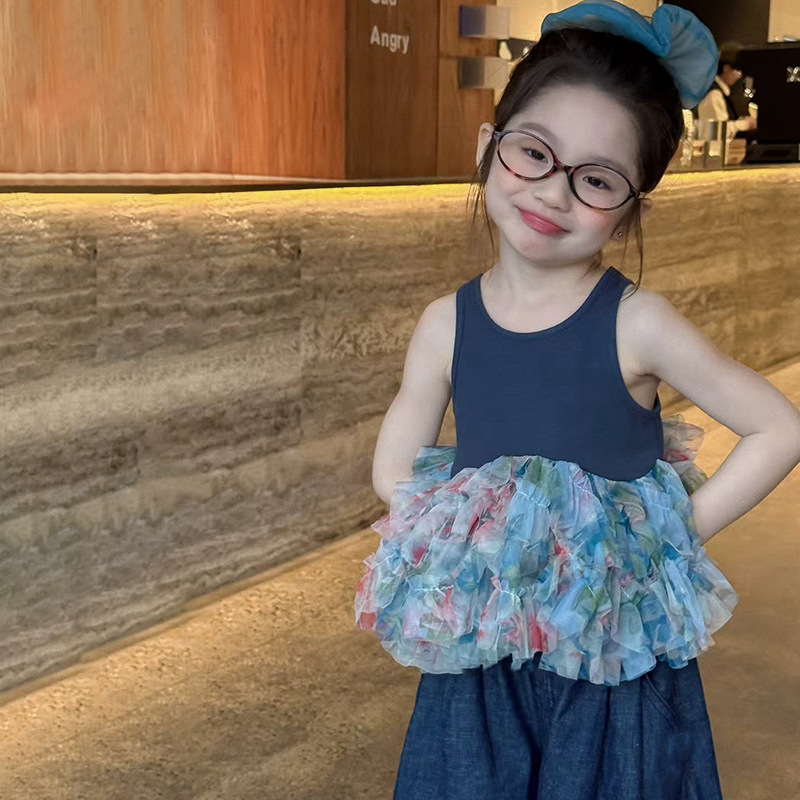 여자 여름 새 도착 2025 민소매 스티칭 레이스 조끼 스커트 탑 한국 스타일 느슨한 데님 넓은 다리 바지스토어 가기