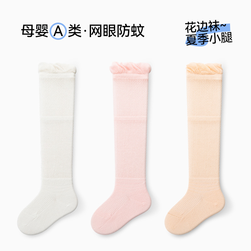 아기 양말 봄과 여름 얇은 메쉬 뼈없는 아기 양말 긴 무릎 반 모기 양말 신생아 양말 솔리드 컬러 코튼 양말