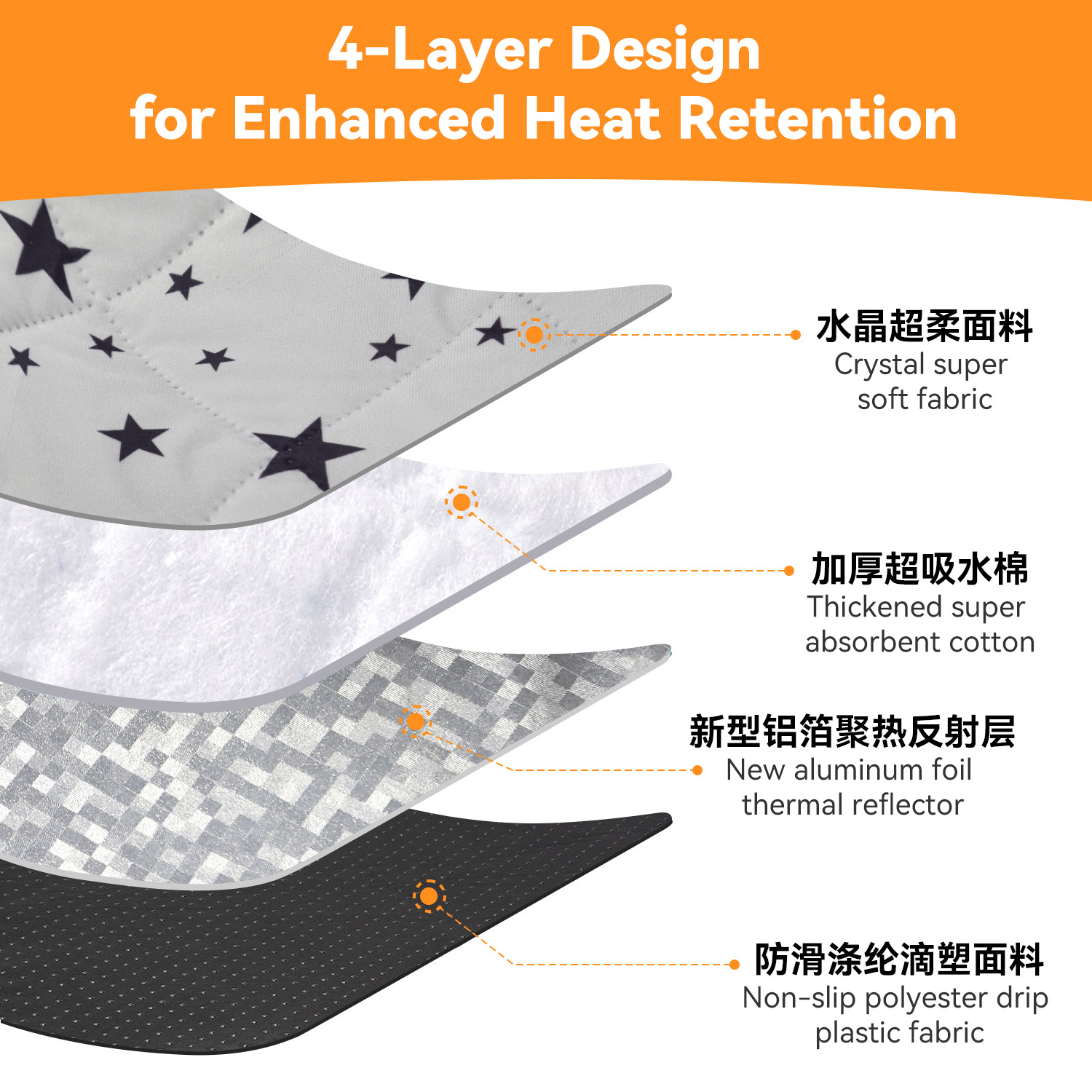 第一层:水晶超柔面料,温暖舒适