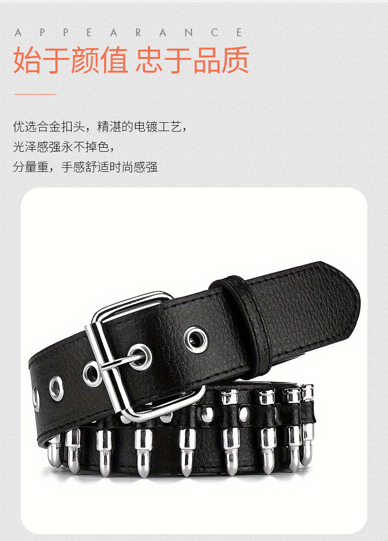 유럽과 미국의 펑크 스타일 총알 벨트 라인 스톤 힙합 록 독특한 포켓 벨트 남성 여성 벨트 새로운스토어 가기