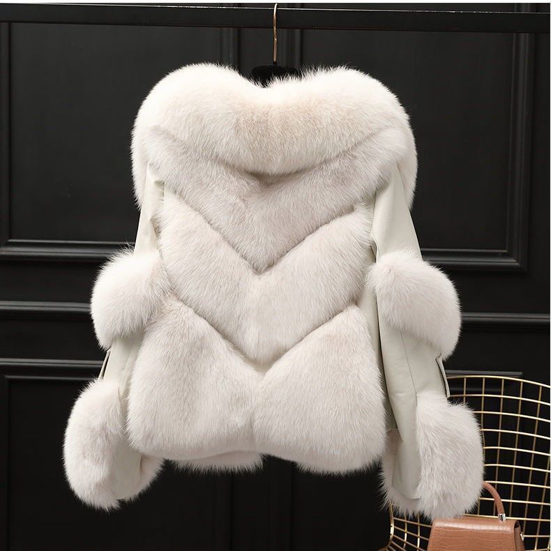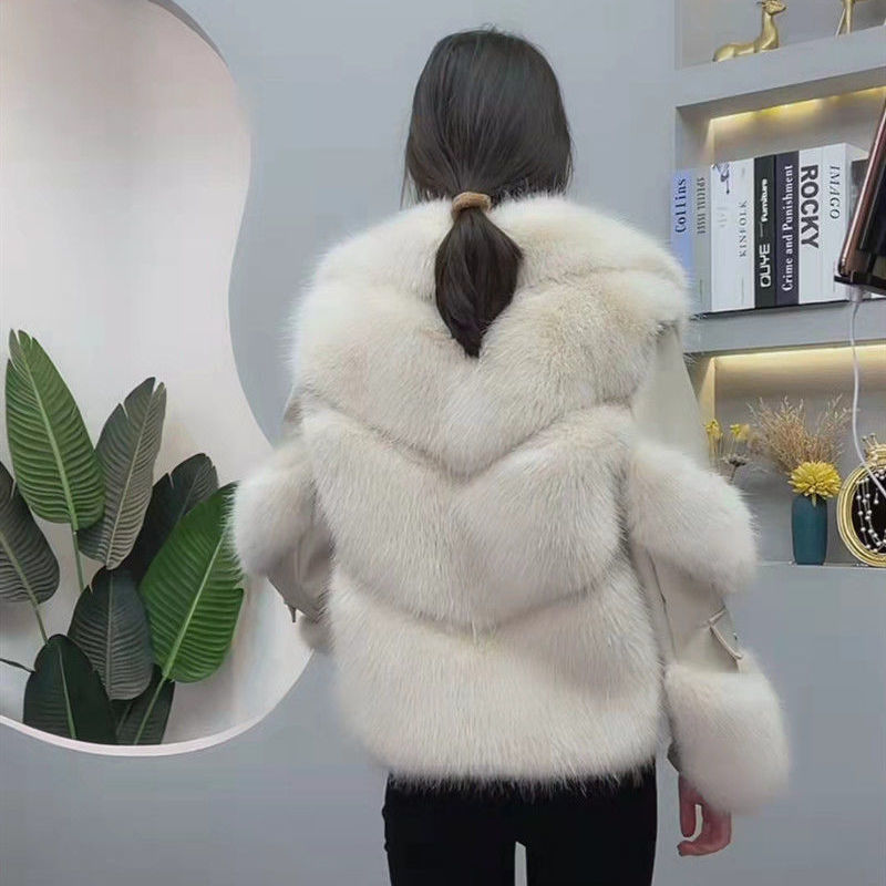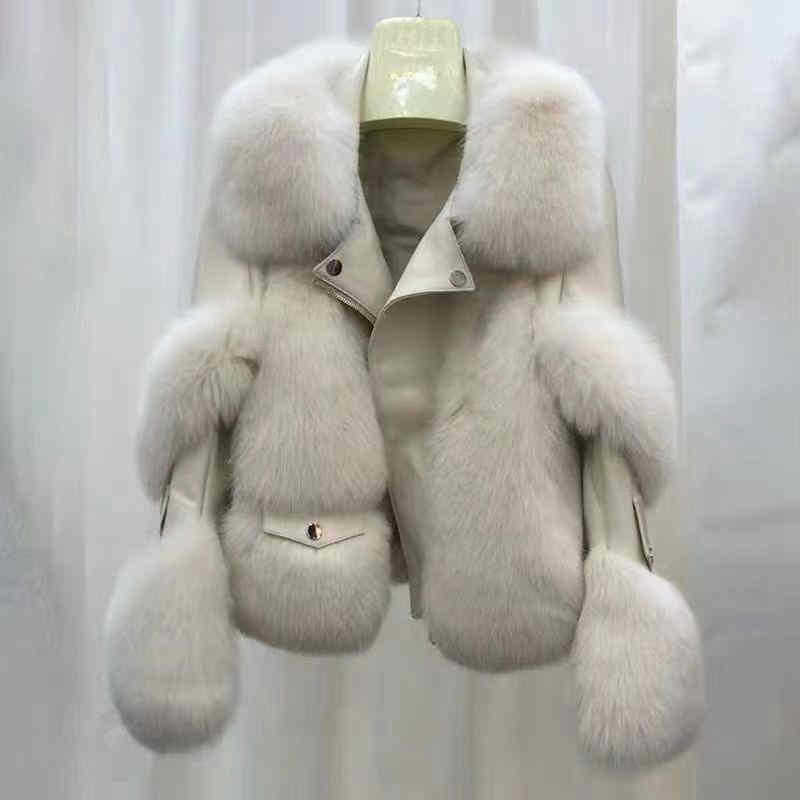 2025 겨울 새로운 패션 가짜 폭스 모피 짧은 젊은 코트 우아한 여성 오토바이 스타일 가죽 코트스토어 가기