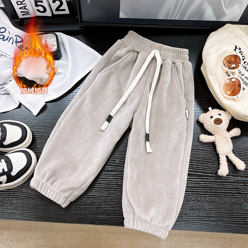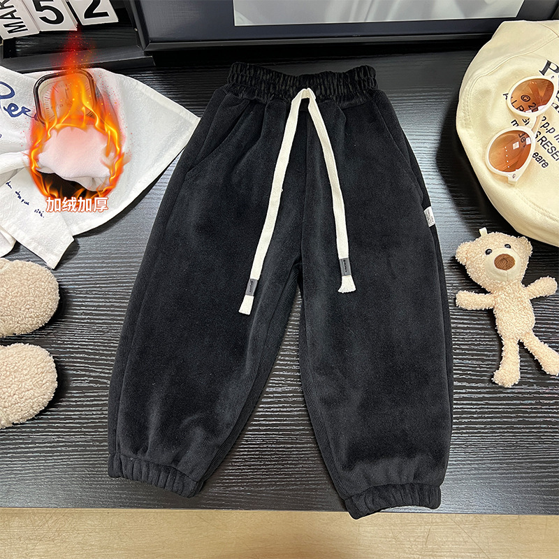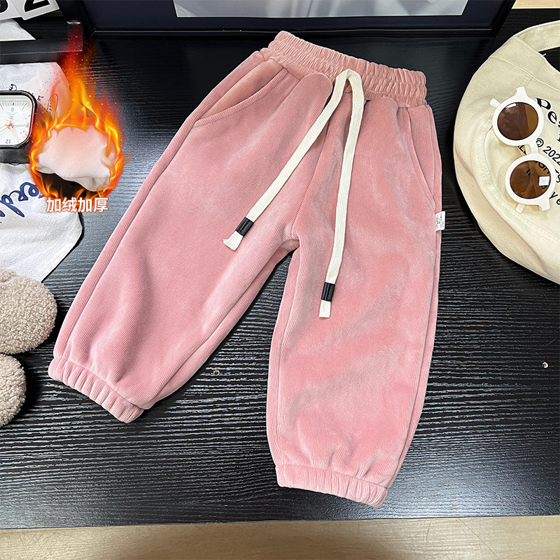 어린이 기모 두꺼운 바지 가을 및 겨울 외부 착용 소년 운동복 여자 스포츠 바지 두꺼운 원피스 벨벳 중형 및 대형 아동복