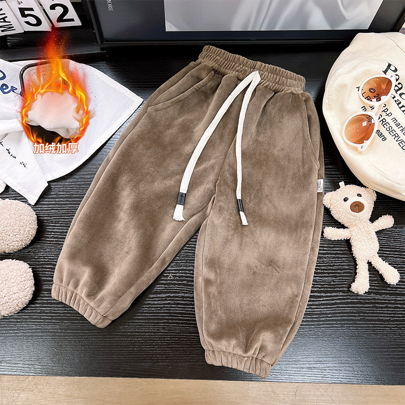 어린이 기모 두꺼운 바지 가을 및 겨울 외부 착용 소년 운동복 여자 스포츠 바지 두꺼운 원피스 벨벳 중형 및 대형 아동복스토어 가기